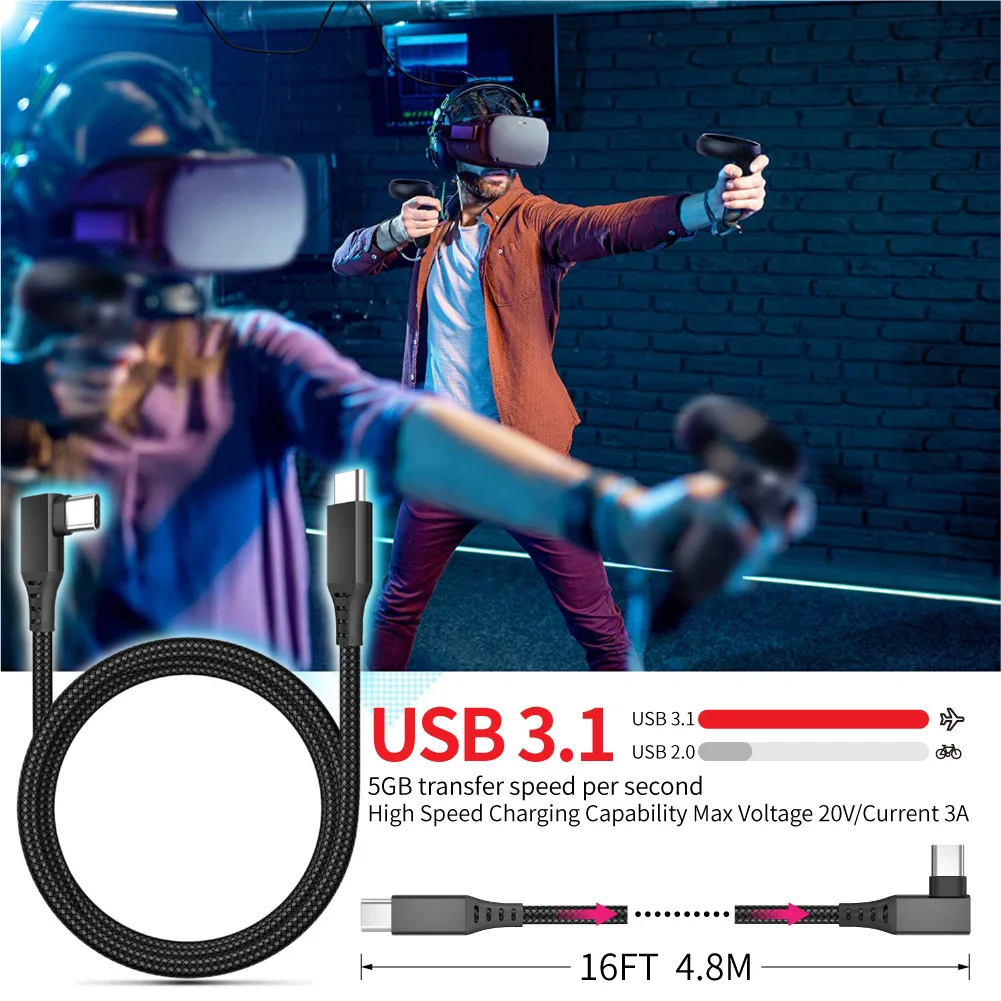 Соединительный кабель для Oculus Quest 2 USB 3,2 Gen 1 USB 3,1 Gen 2, аксессуары для быстрой зарядки и передачи данных, шнур типа C 3 м 5 м