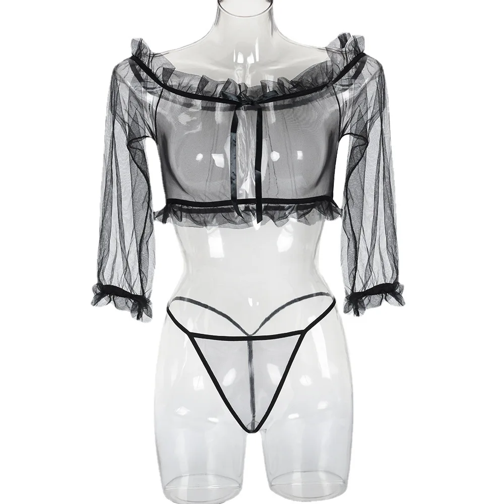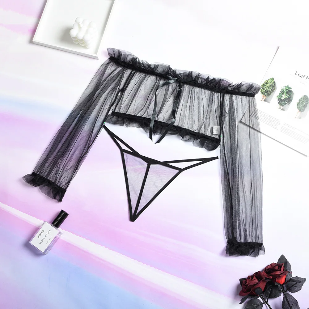 Сексуальное прозрачное нижнее белье с открытыми плечами и оборками,...