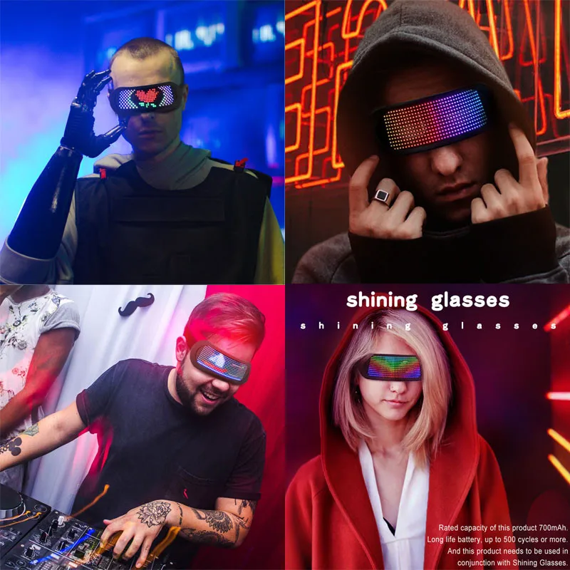 Полноцветные светодиодные динамические очки, жалюзи, APP, Bluetooth, светящиеся очки, светящиеся очки для бара, K-ТВ, Рождественский реквизит для вечеринок