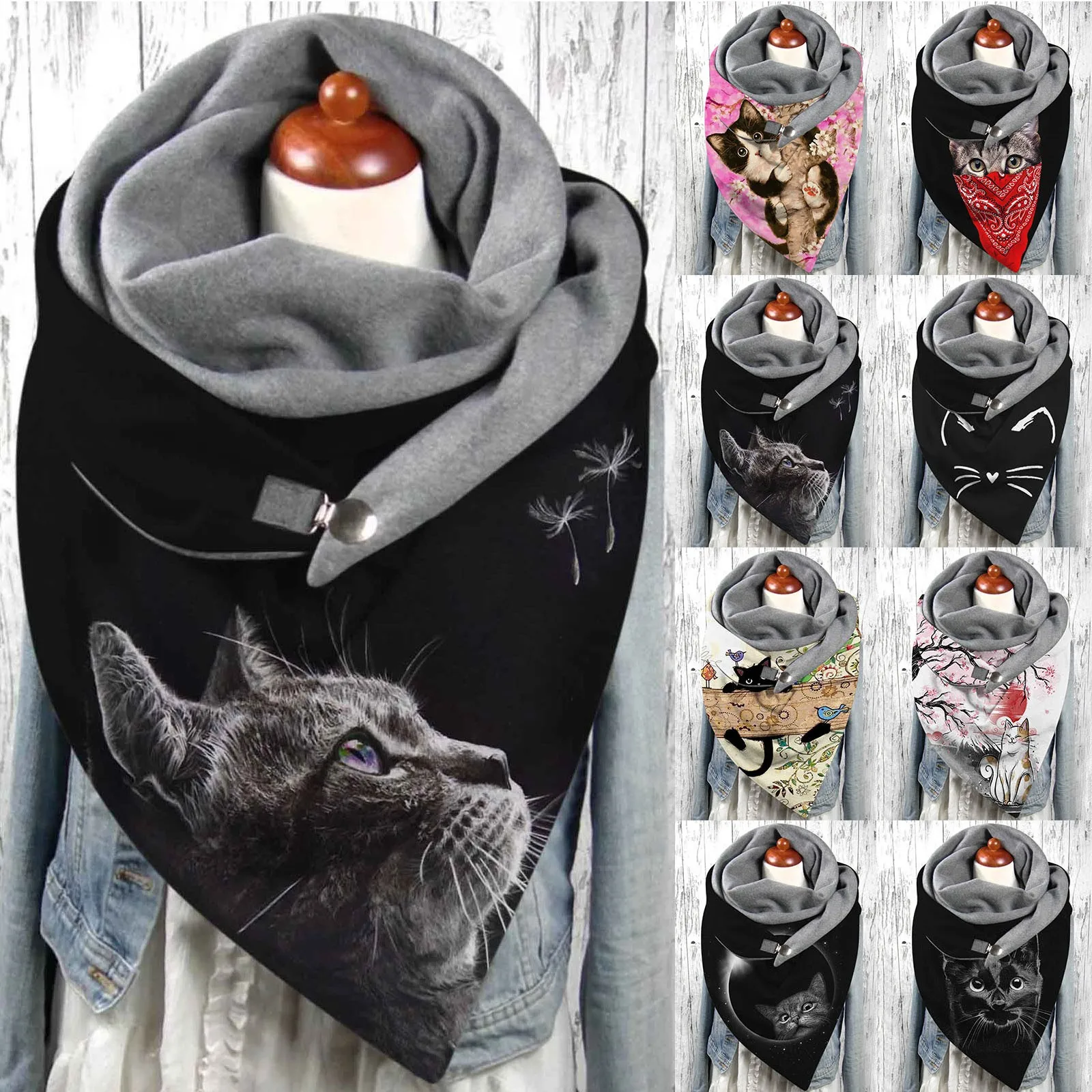 Модный зимний шарф для женщин 2021, мягкая накидка на пуговицах с котом, повседневные теплые шарфы, шали, шарф, Женская бандана на шею