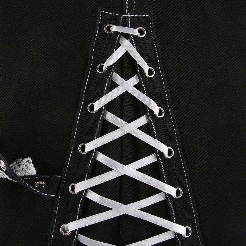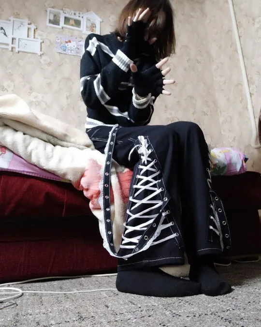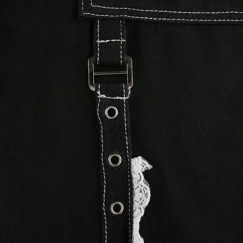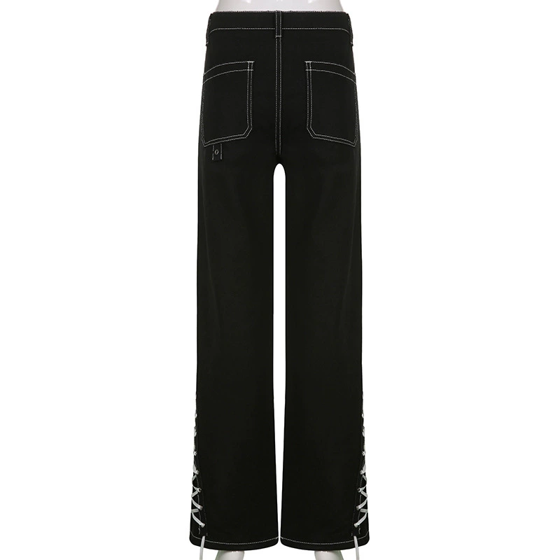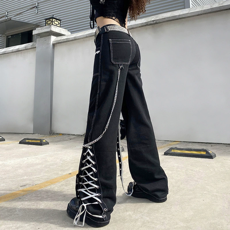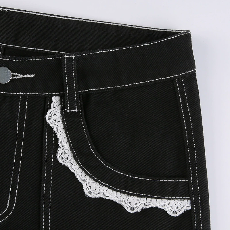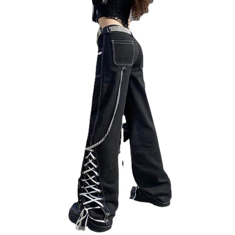 Джинсы женские кружевные с заниженной талией, милые черные брюки-карго в готическом стиле, с застежкой-молнией и карманами, академические джинсы в стиле панк для косплея, 90-х