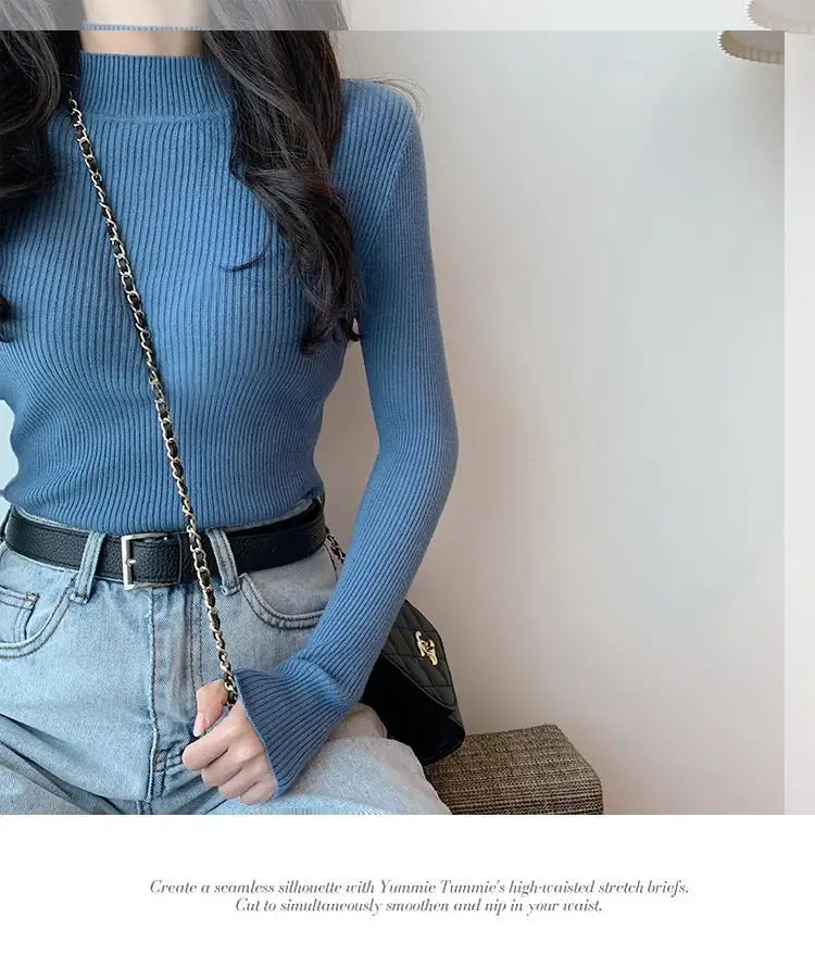 Осенне-зимний женский свитер, элегантный пуловер с длинным рукавом, подходящий ко всему Дамский приталенный Вязаный топ с полувысоким воротником, женская одежда