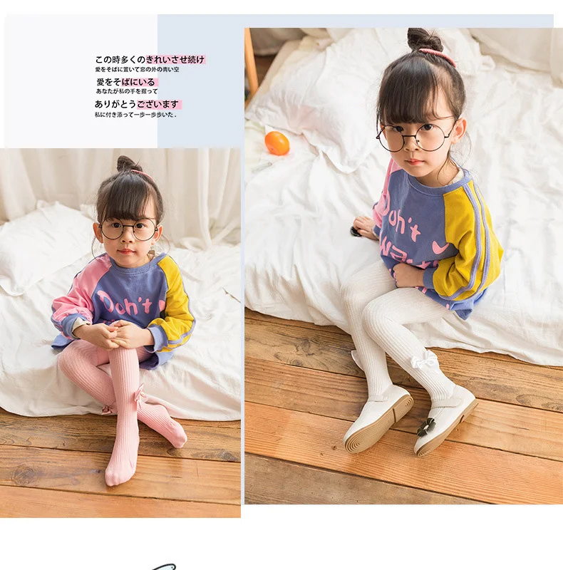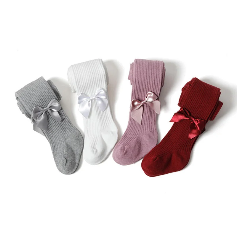 Колготки для девочек от 0 до 4 лет, весна-осень, милые колготки с бантом для девочек, мягкие хлопковые вязаные детские колготки эластичные детские чулки