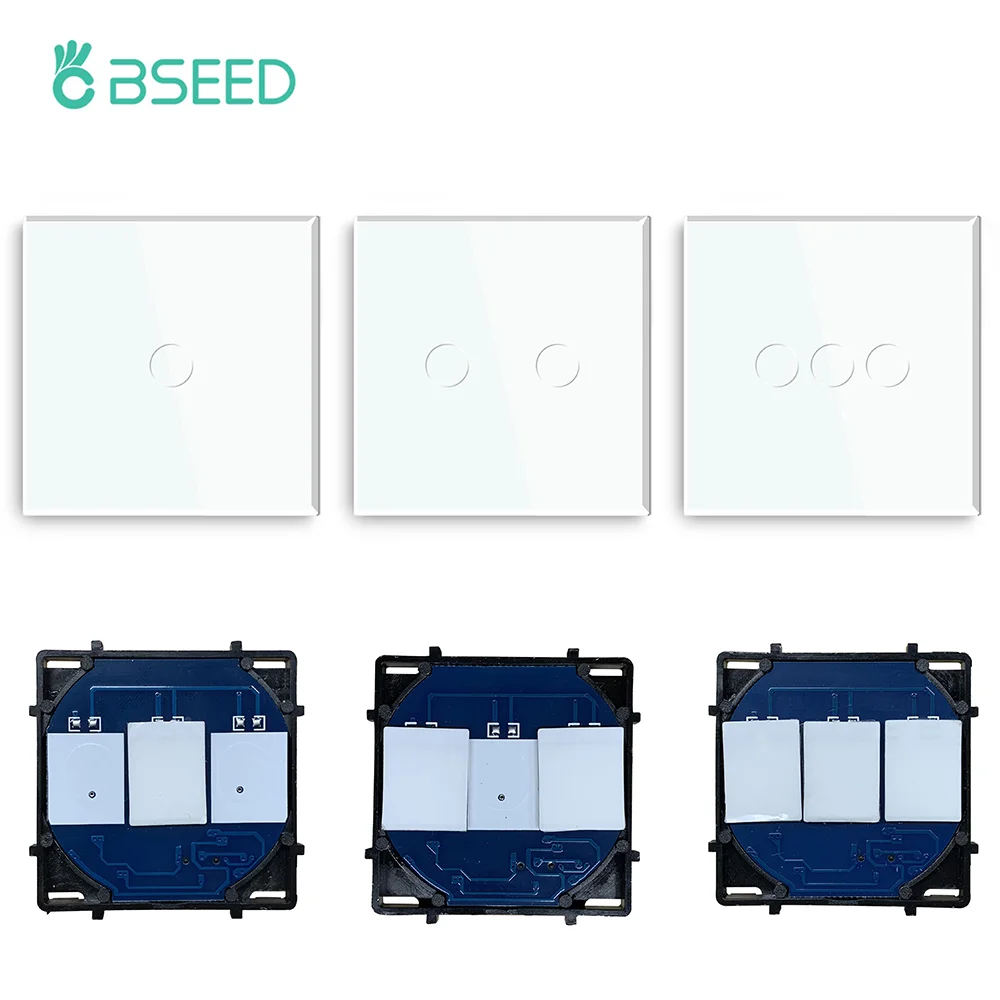 Bseed ЕС Россия Великобритания стандартная белая стеклянная панель с переключателем база 86 мм 157 мм жемчужное Хрустальное стекло одинарная стеклянная панель для дома