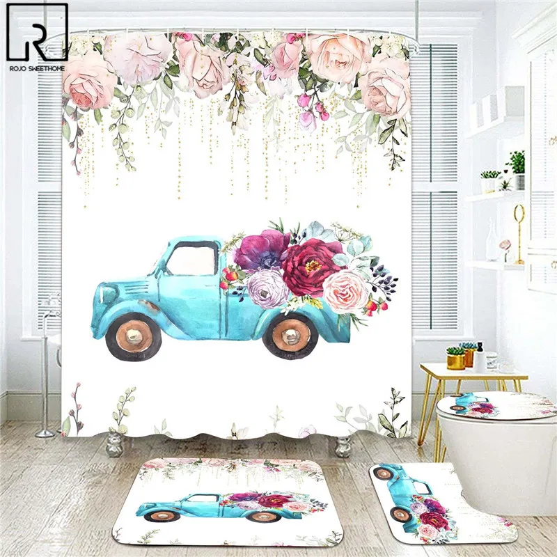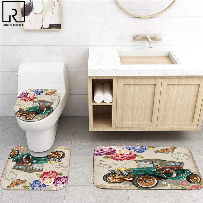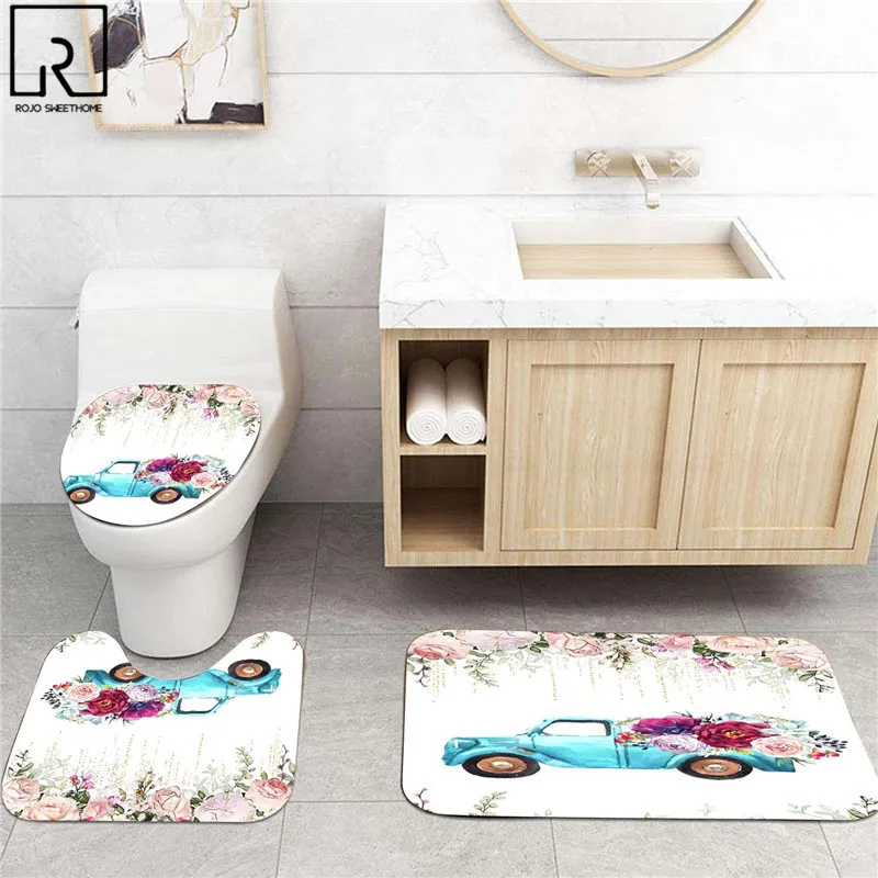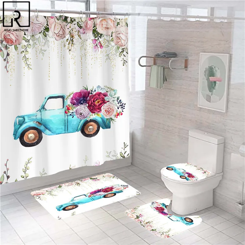 Винтажная декоративная занавеска для ванной комнаты с цветочным рисунком, современный аксессуар, крышка для сиденья унитаза, коврики для ванной, тканевый разделитель для экрана ванной