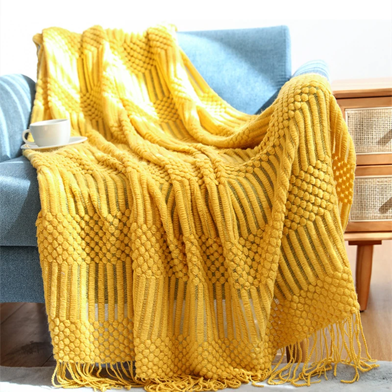 Одеяло в скандинавском стиле для дивана, простое однотонное искусственное одеяло с кисточкой, мягкое покрывало, домашнее украшение, Вязаная Шаль, плед
