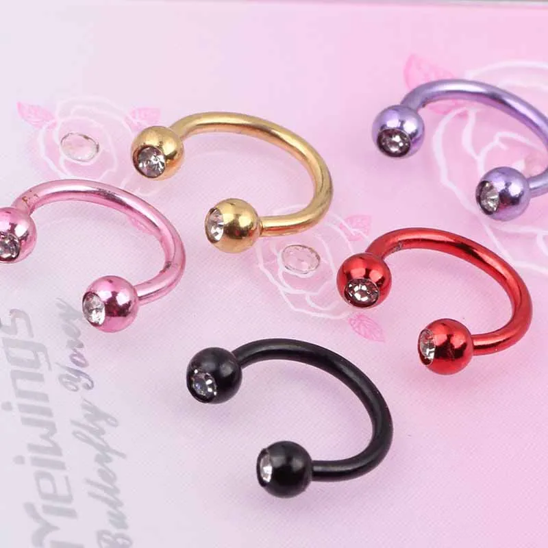 Кольцо сферическое из нержавеющей стали для пирсинга носа, пирсинг для соска, подкова-Спайк, 8 цветов, 1 шт.