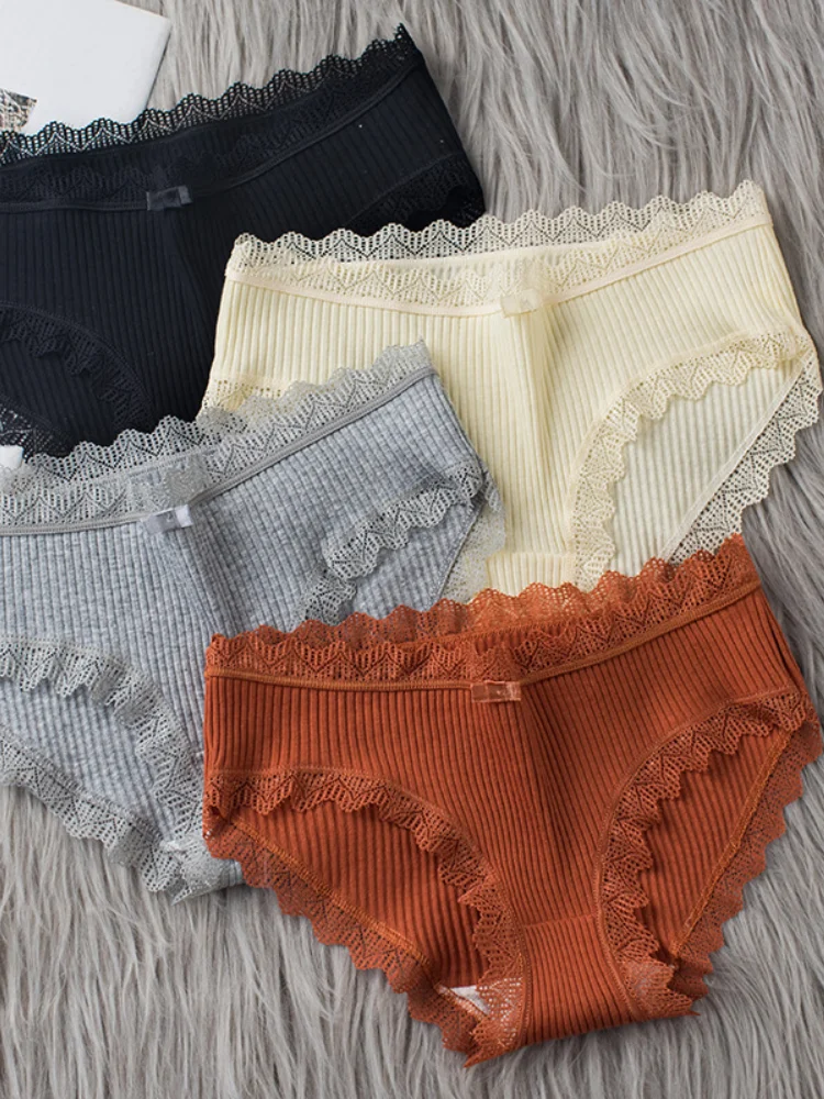 Мягкое Нижнее белье для женщин 2022, модные женские трусики, кружевное нижнее белье со средней талией, однотонные приятные для кожи дышащие женские трусы