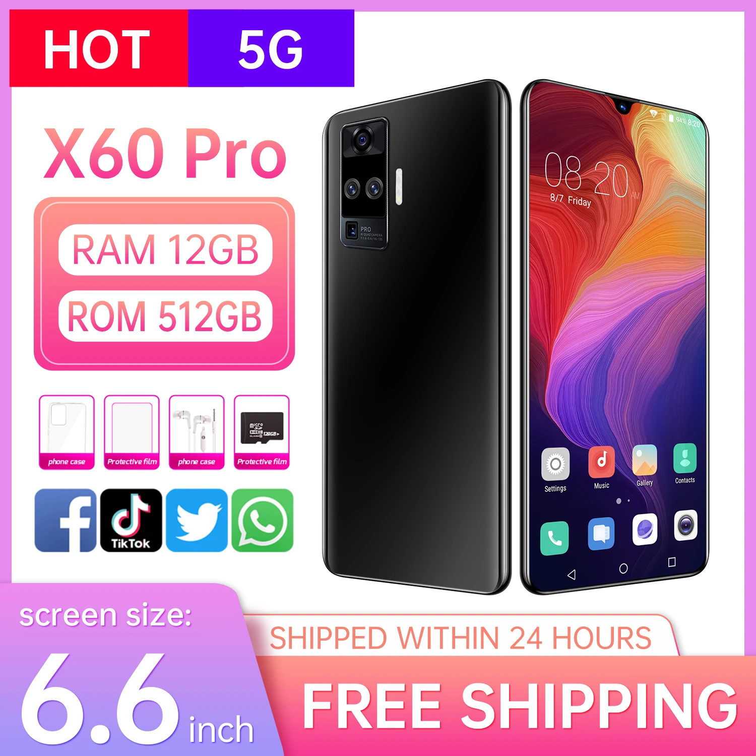 Смартфон, 6,6 дюйма, 12 Гб + 512 ГБ, для Vivo X60 Pro, Samsung, Hua...