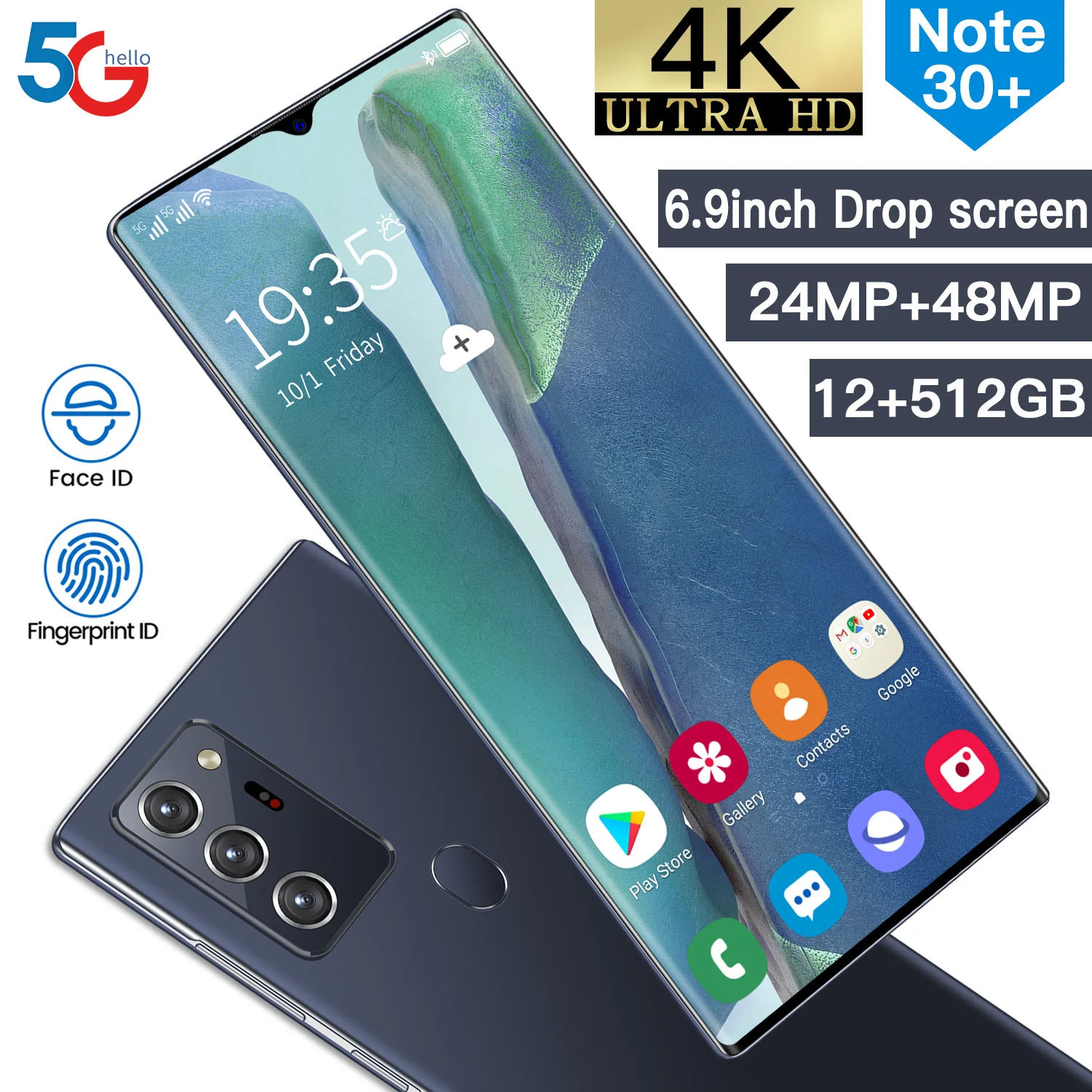 Новинка 2021, смартфон с идентификацией по отпечатку пальца, ультратонкий, 12 + 512 ГБ, для Samsung Galaxy Note30 +