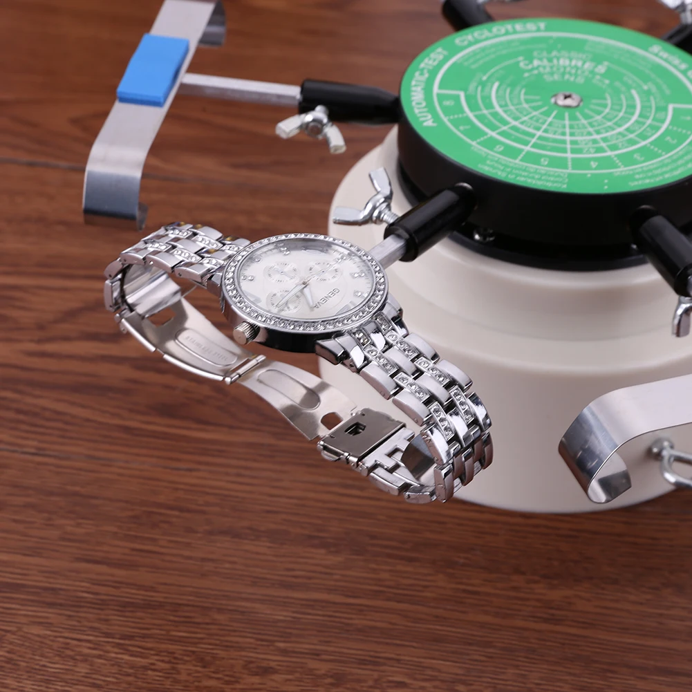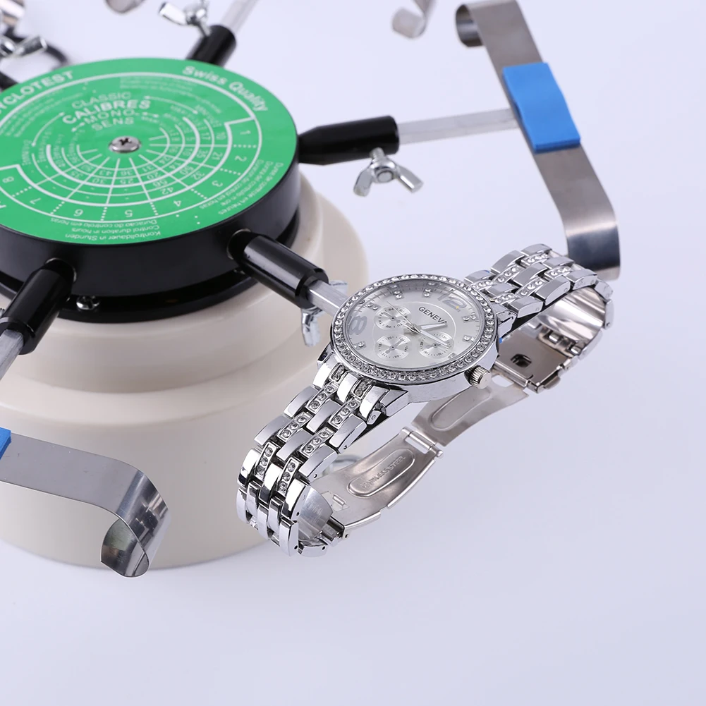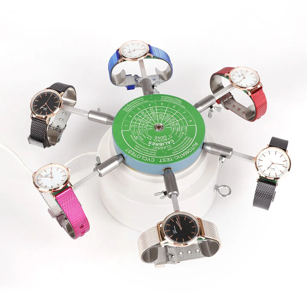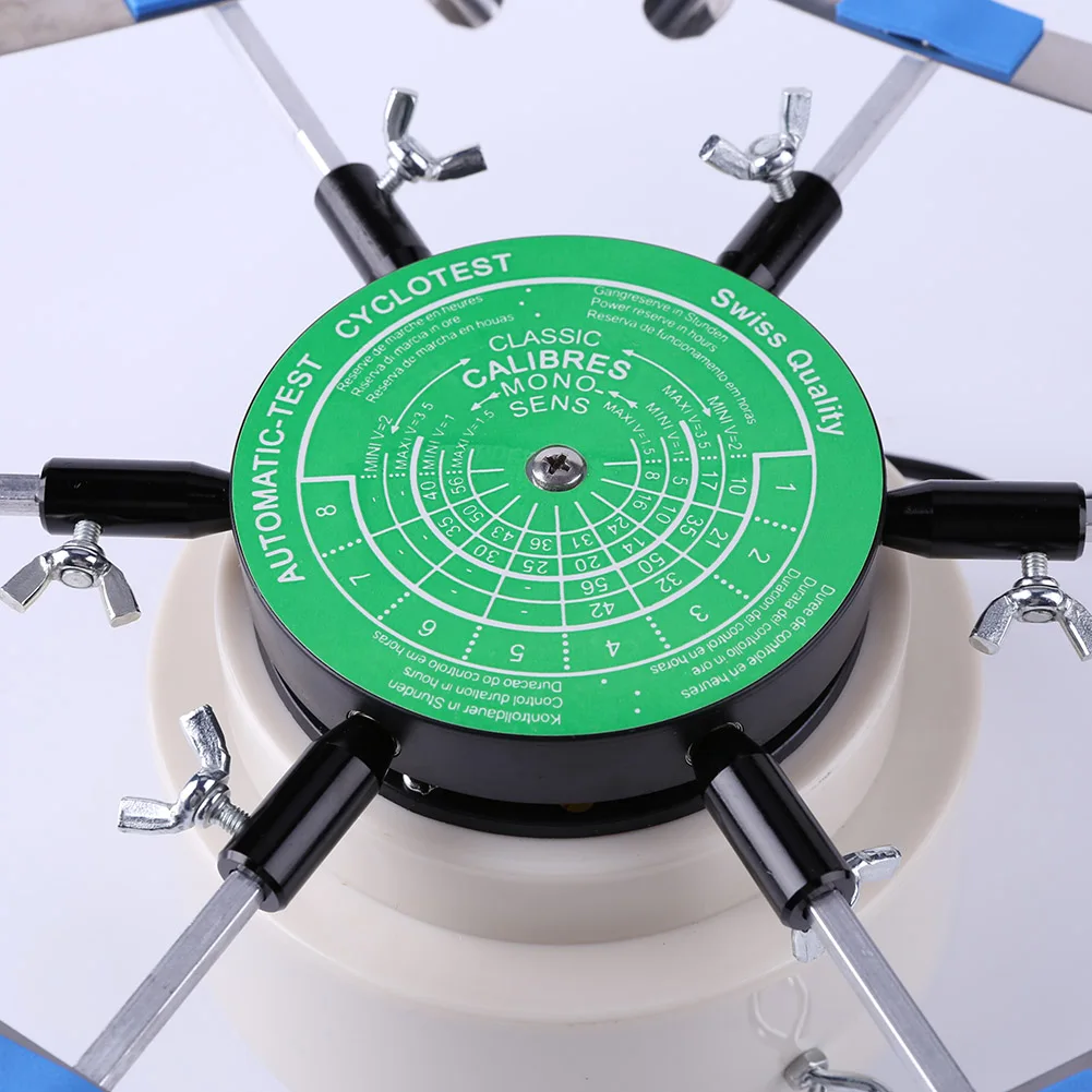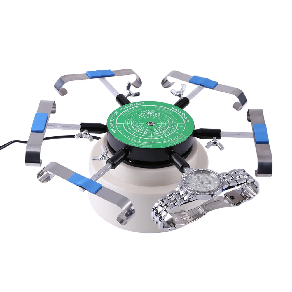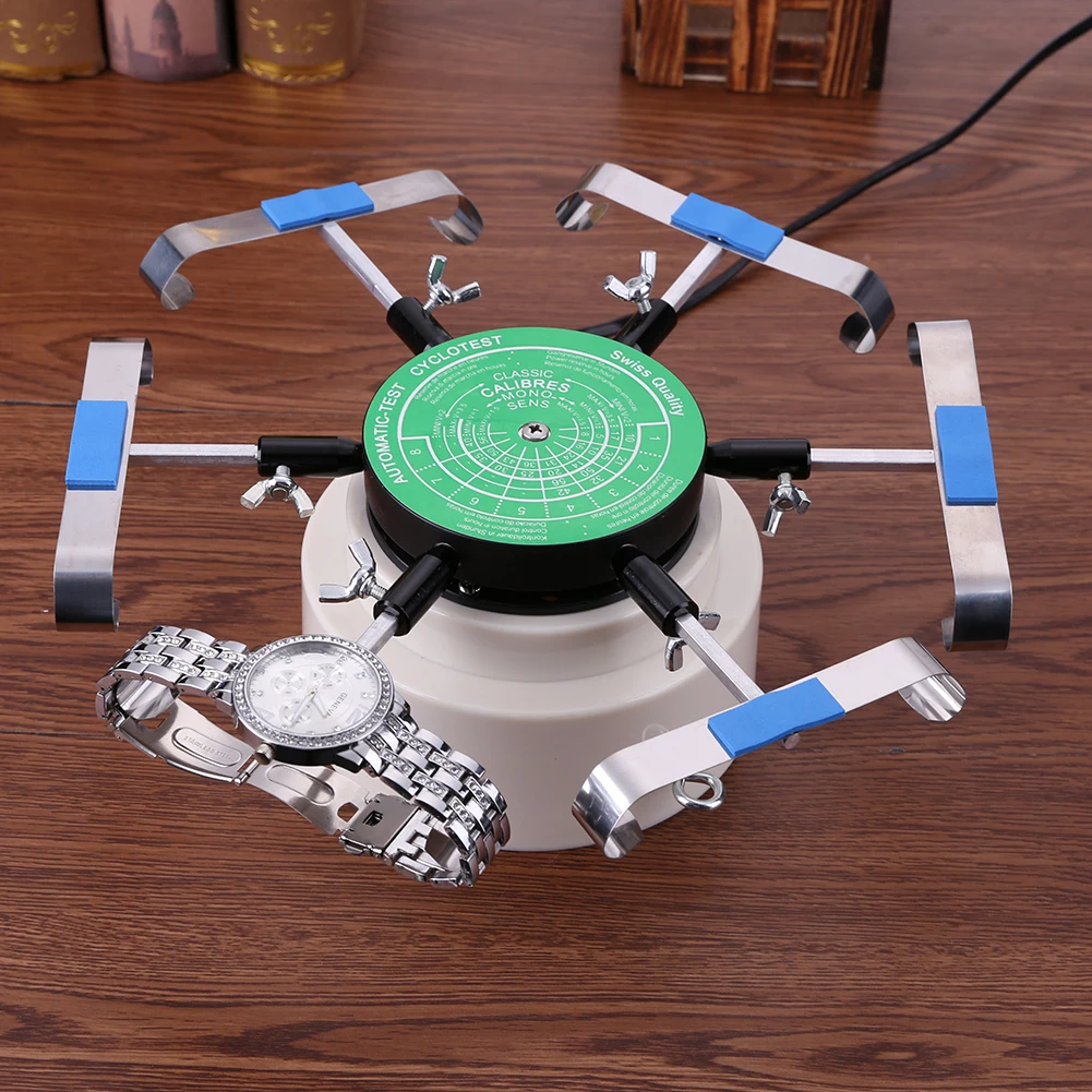 Особенности:1. Пластик + сплав, длительный срок службы, не легко повредить2. Содержит 6 съемных вешалок для большинства часов.3. Подключите питание, чтобы включить переключатель, чтобы удерживать часы на месте.Характеристики:Материал: пластик + сплавНапряжение: EU250V, US110VРазмер: 215*180*125 мм/8,46*7,08*4,92''Примечания:Возможны отклонения в 1-3 мм вследствие измерений вручную.Из-за различных дисплеев и различного светильник, изображение может не показать фактический цвет товара. Спасибо за понимание.