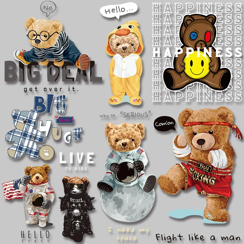 Наклейки счастливого медведя, Мультяшные нашивки, аппликация на одежду, Термотрансферная нашивка из ПВХ, Термотрансферная печать