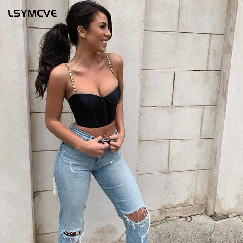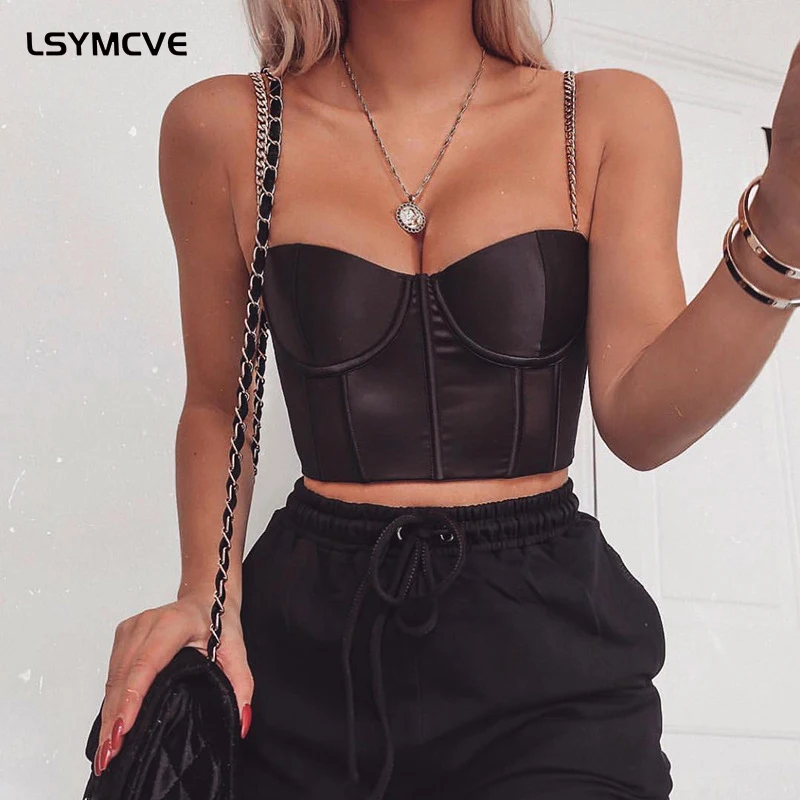Майка женская атласная с металлической цепочкой и глубоким V-образным вырезом