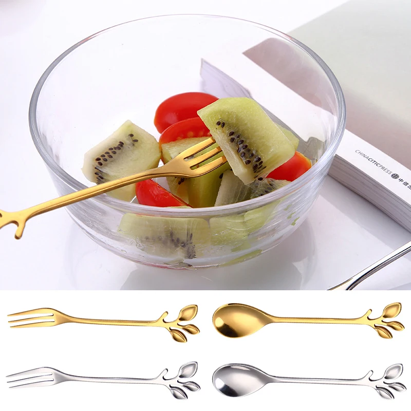 Нержавеющаясталь листья Кофе напиток смешивания ложка вилка Посуда ...
