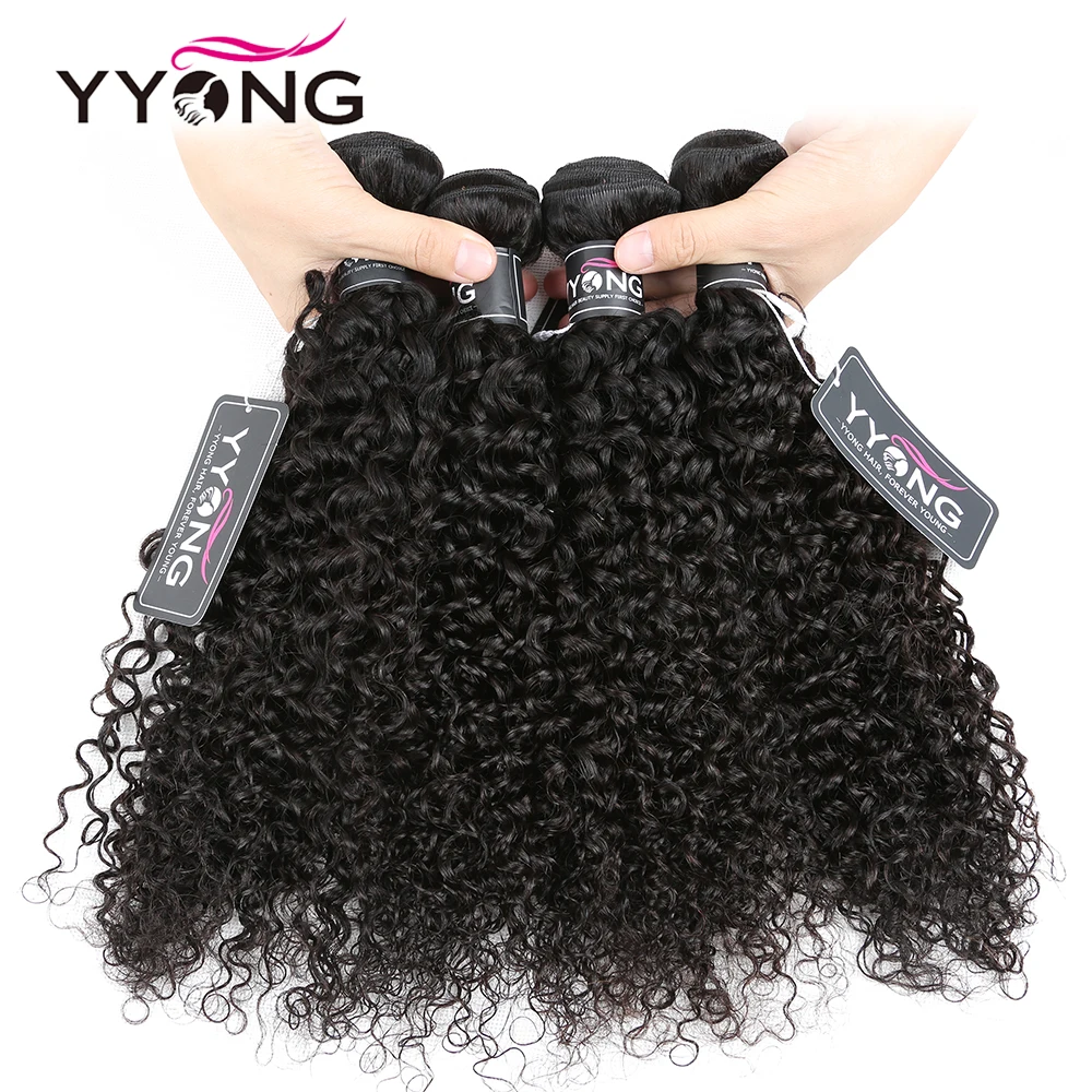 Yyong перуанские курчавые вьющиеся 100% человеческие волосы, волнистые пучки, Remy волосы, плетение 3 шт.лот, натуральный цвет, 8-26 дюймов, волосы для наращивания
