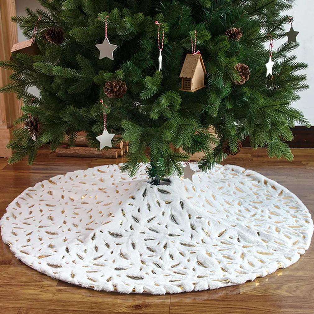 Юбка на рождественскую елку, перо, бронзовое, многофункциональное Рождественское украшение, портативный фартук на елку, украшение