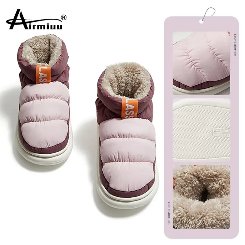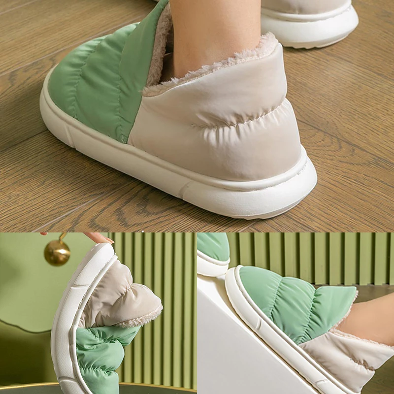 Уютные тапочки мужские зимние Пуховые тканевые Слайдеры для дома и улицы теплая плюшевая обувь для женщин водонепроницаемые снежные слайды мужские Нескользящие тапочки женские домашин
