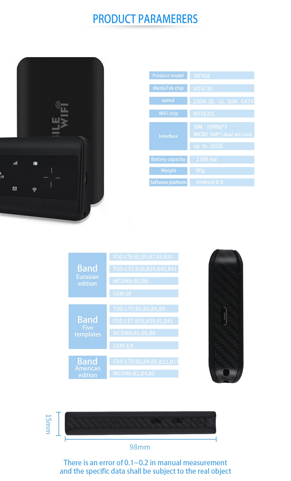 MF904 светодиодный-1: применимо к частям Юго-Восточной Азии, таким как Таиланд, Сингапур, Индонезия, Камбоджа, Бирма, Филиппины и т. Д.4G-LTE/FDD: B1/B3/(850/2100 МГц)3G/WCDMA:B1(2100 МГц)MF904 светодиодный-2: подходит для большинства стран Азии, таких как Израиль, Южная Корея, Индия, Казахстан, Шри-Ланка, Таиланд, Япония, Сингапур, Индонезия и т. Д.4G-LTE/FDD:B1/B3/B5/B8(850/900/1800/2100 МГц)4G-LTE/FDD:B38/B39/B40/B41(1900/2300/2500/2600 МГц)3G/WCDMA:B1/B5/B8(850/900/2100 МГц)MF904 светодиодный-3: подходит для Европы, Африки, Азии, всех стран и регионов, таких как Россия, Израиль, Южная Корея, Испания, Бразилия, Украина, Франция, Италия, Нидерланды, индия, Нигерия, Швейцария, Казахстан, Польша, Гана и т. Д.4G-LTE/FDD:B1/B3/B7/B8/B20(800/900/1800/2100/2600 МГц)4G-LTE/FDD:B38/B39/B40/B41(1900/2300/2500/2600 МГц)3G/WCDMA:B1/B8(900/2100 МГц)MF904 светодиодный-4 подходит для стран и регионов Северной Америки, Южной Америки, Центральной Америки, таких как США, Чили, Мексика, коломия и т. Д.4G/LTE: B2/B4/B5/B7 (850/1700/1900/2600 МГц)3G/QCDMA: B2/B4/B5 (850/1700/1900 МГц) Маршрутизатор разблокирован. Но разные регионы имеют разный диапазон частот. Пожалуйста, проверьте частоту вашей sim-карты перед заказом. Вы можете скачать приложение «cellular-z», чтобы проверить точный диапазон freuqency вашей симкарты. Или вы можете проконсультироваться с нами.