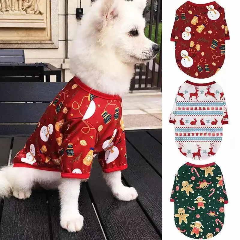 Рождественская Одежда для собак, милая футболка с изображением снег...