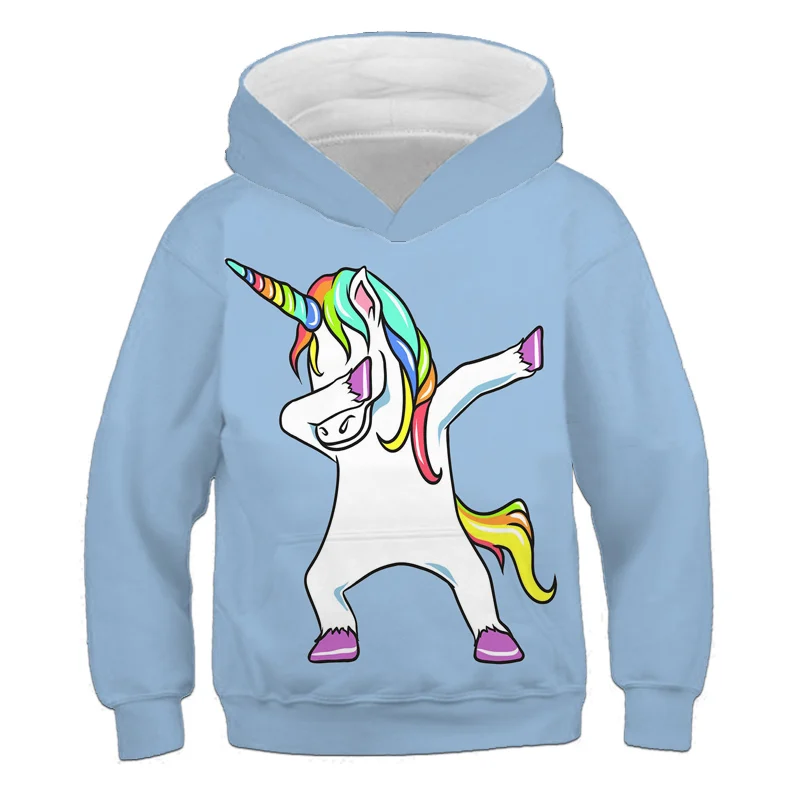 Детская одежда, толстовка с капюшоном в виде единорога на весну и осень, креативная Детская толстовка на заказ, с длинным рукавом и мультипликационным принтом для мальчиков и девочек