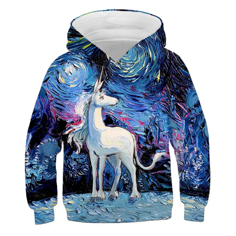 Модные толстовки с 3D единорогом, свитшот для девочек и мальчиков, ...