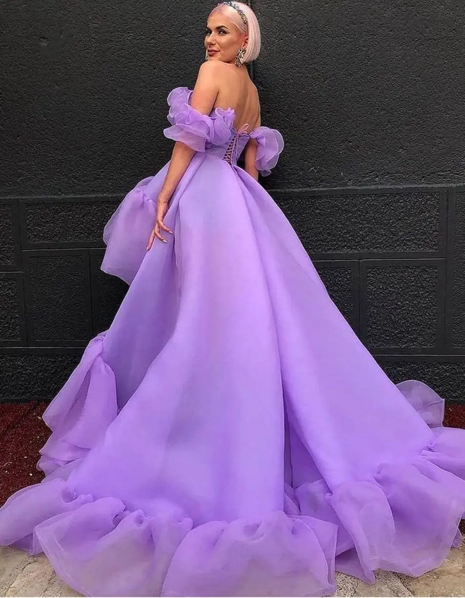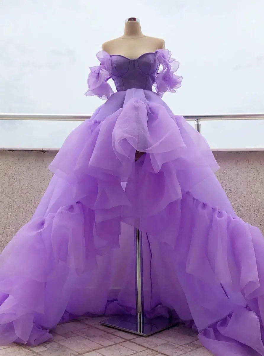 Женское вечернее платье, длинное Пышное с оборками из тюля лавандов...