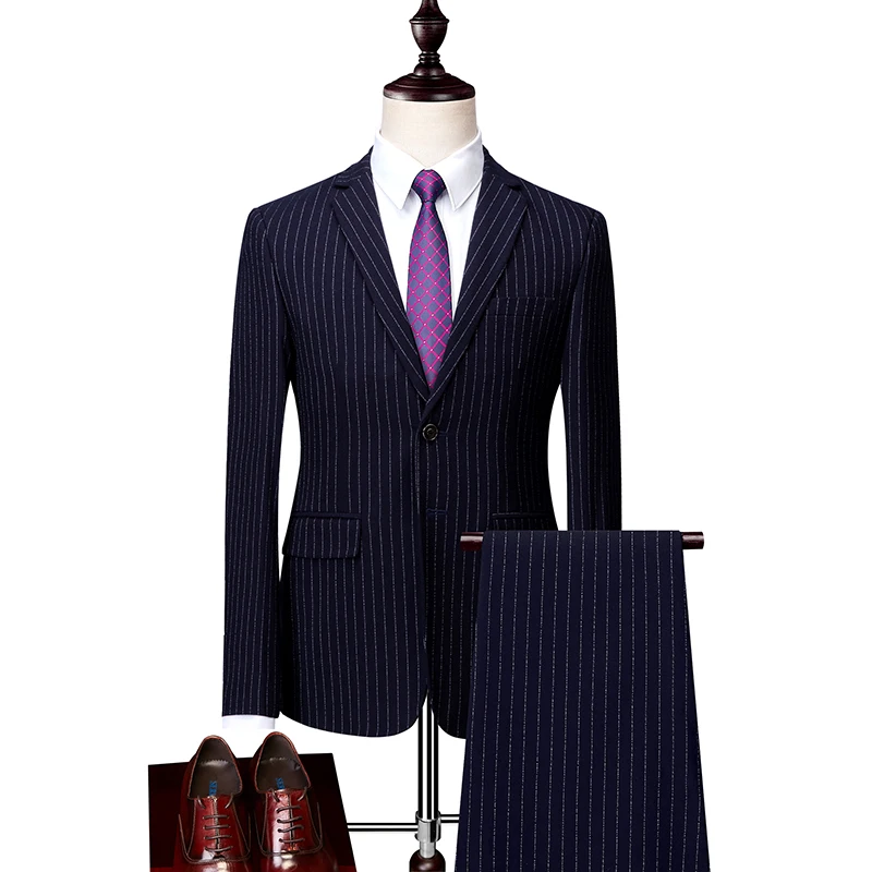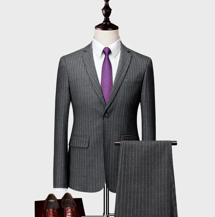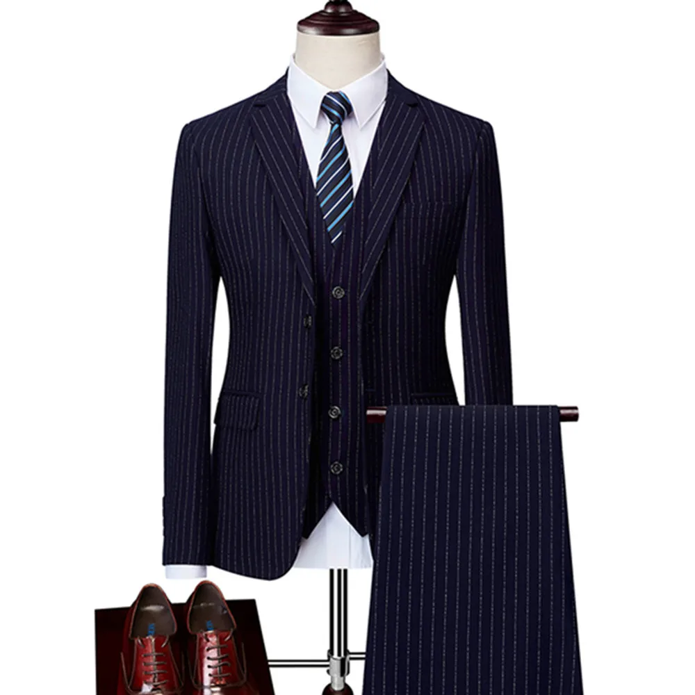 Мужские деловые приталенные смокинги в полоску для свадьбы, костюмы для жениха, Блейзер, комплект из 2 3 предметов, костюм на выпускной, пиджак, брюки, жилет, пальто, брюки, 2021