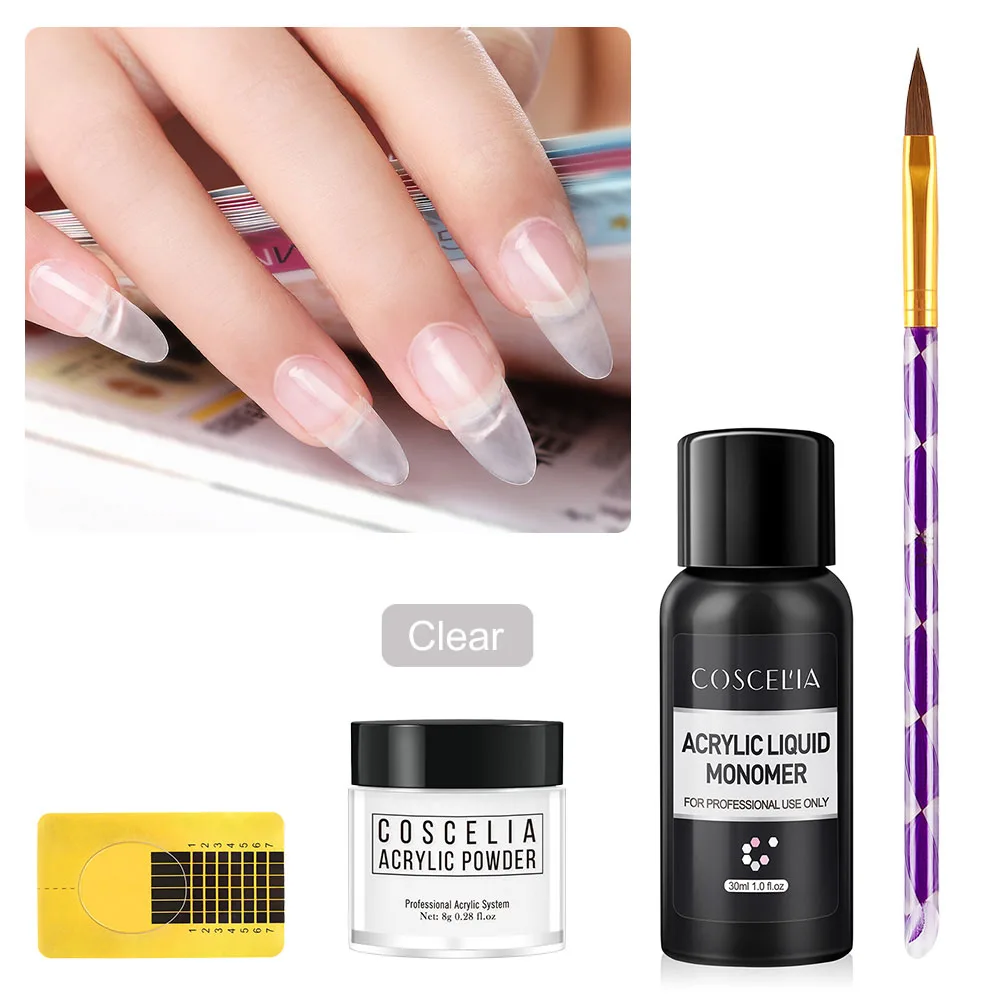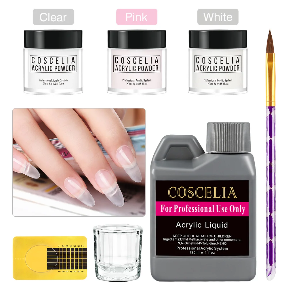 Набор акриловых порошков Coscelia для наращивания ногтей, набор из 3 оттенков, жидкий мономер, набор кристаллов для начинающих