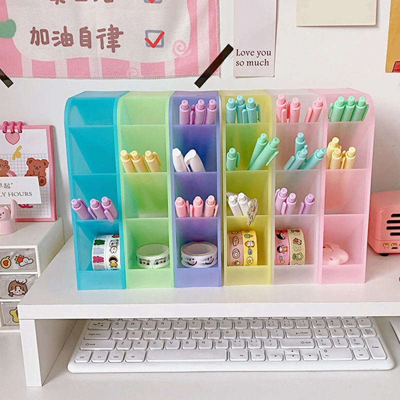 Новинка Kawaii Macaroon Color 4 Gird Настольный Органайзер держатель для ручки Большой размер Настольный макияж коробка для хранения карандашей школьные канцелярские принадлежности