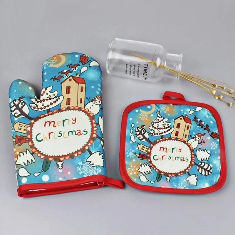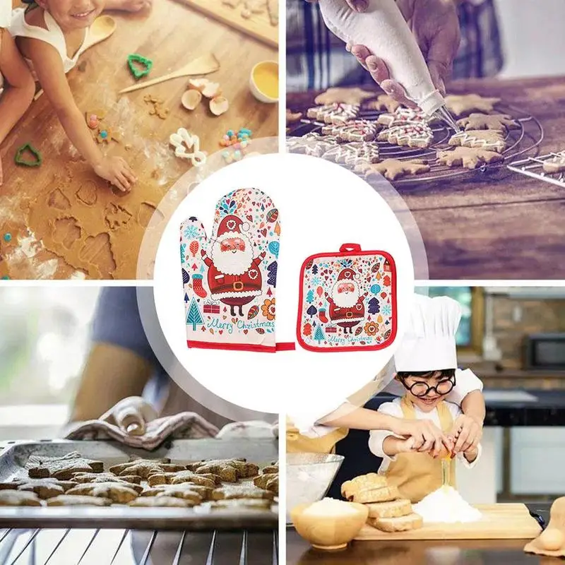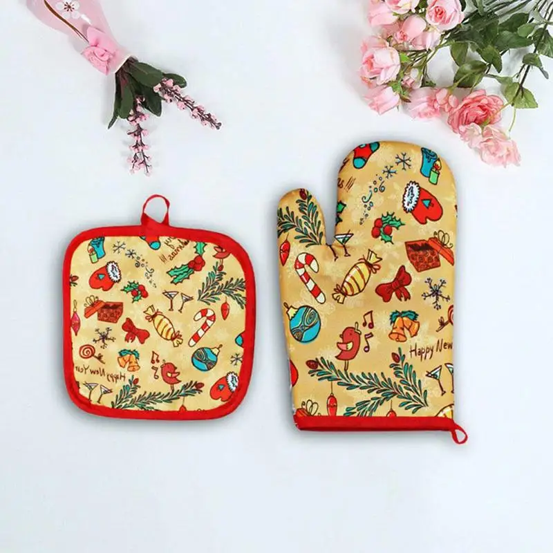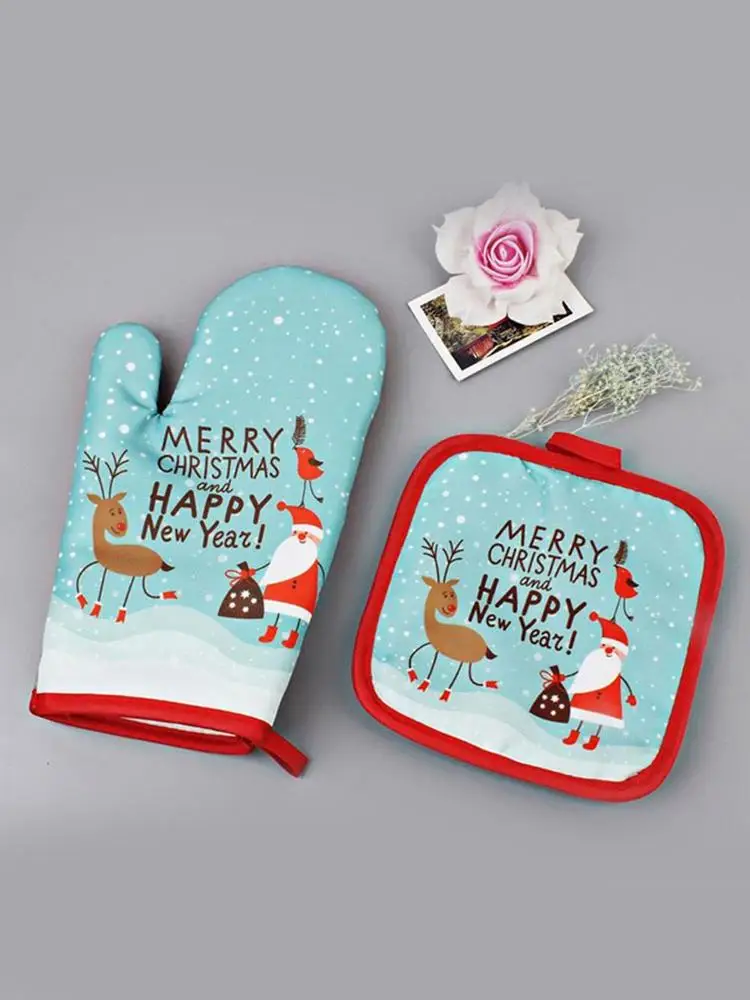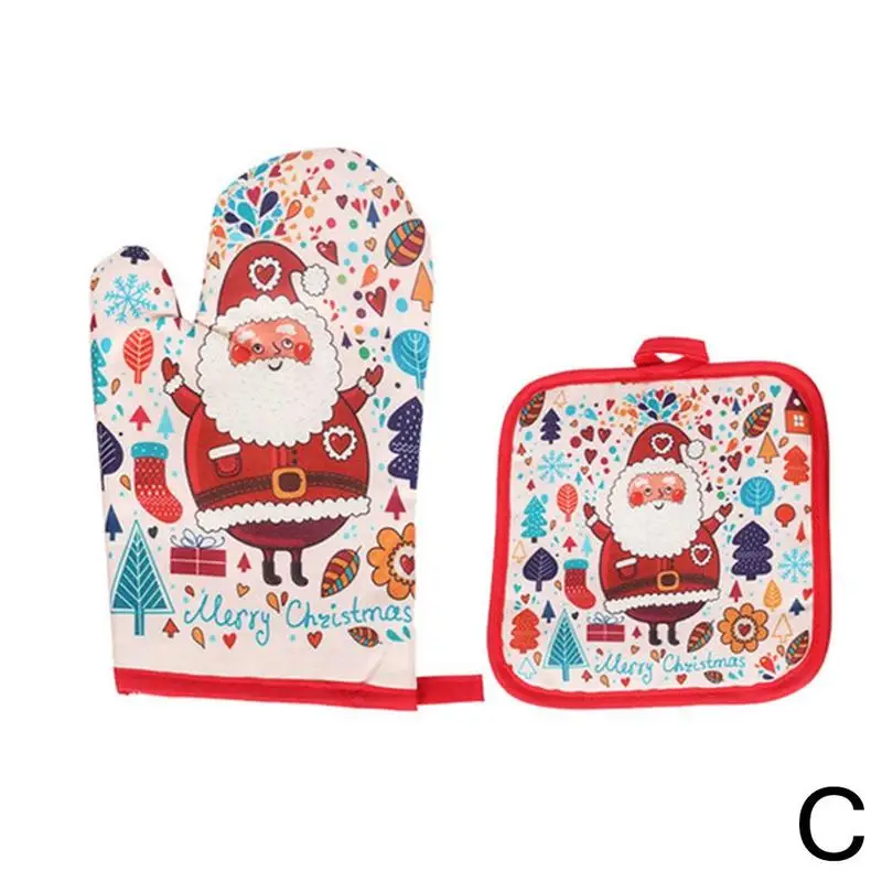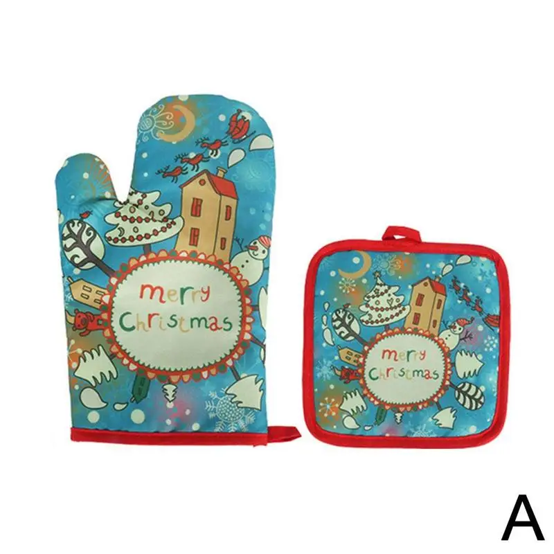 2 шт.компл. нескользящий коврик для микроволновки, зимние перчатки для барбекю, рождественские перчатки для выпечки в духовке, коврики для приготовления пищи Microwa W6X1