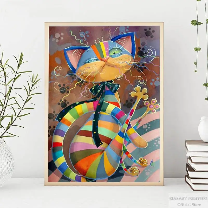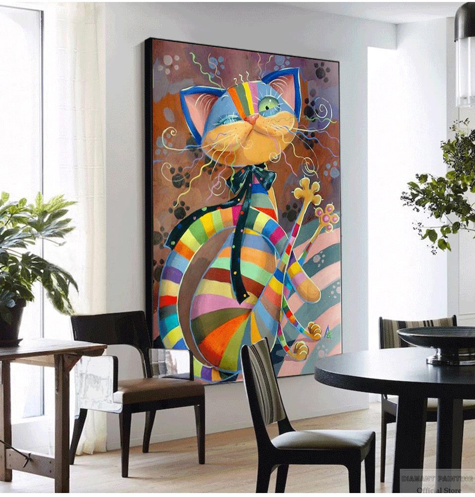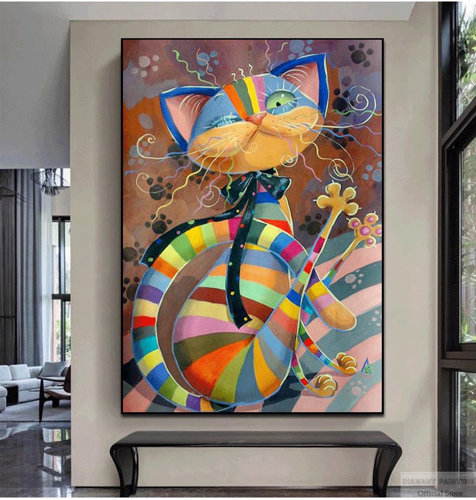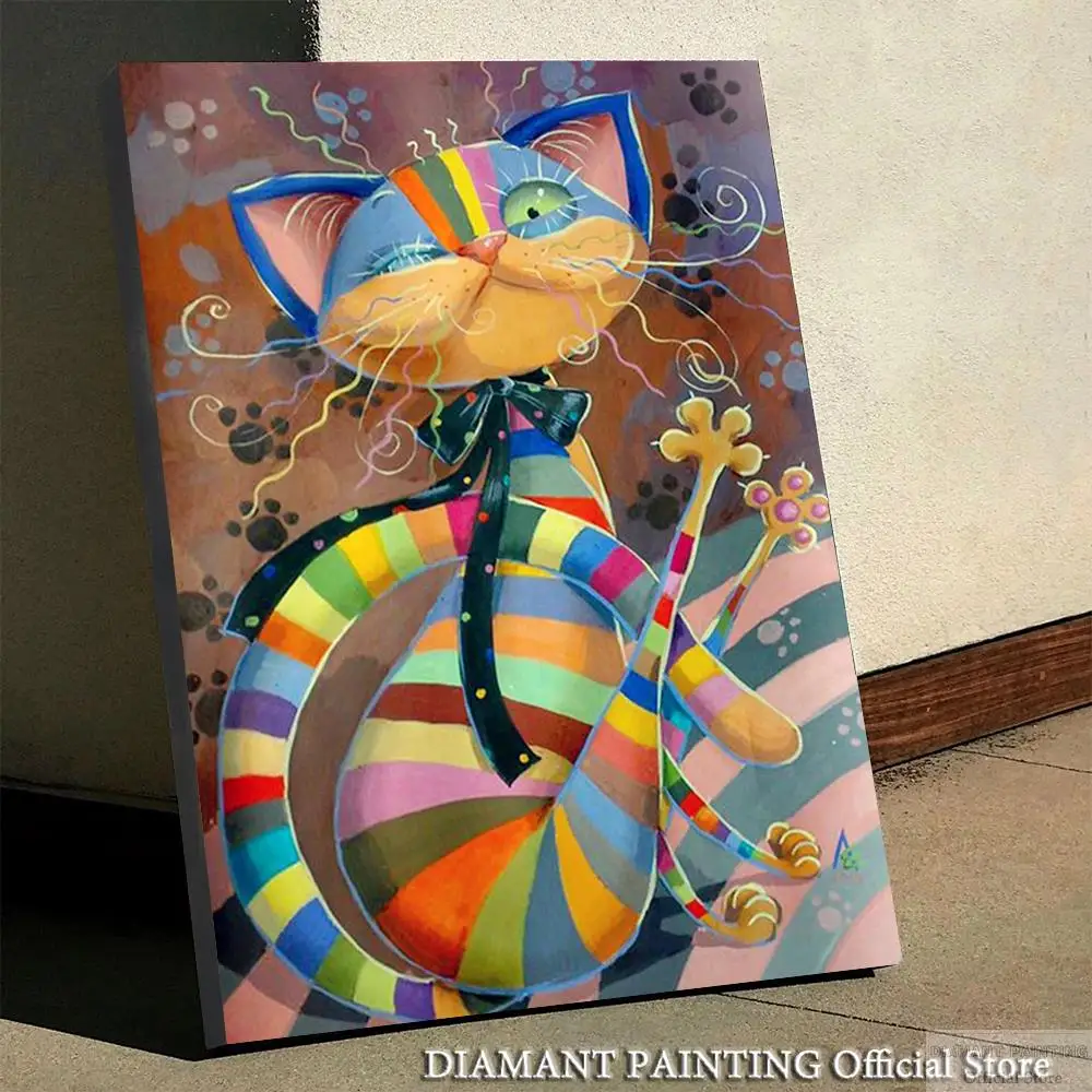 Алмазная живопись с кошкой, полноразмернаякруглая картина с мультяшными животными, вышивка крестиком, ручная работа, декор для детской комнаты, настенное искусство, подарок