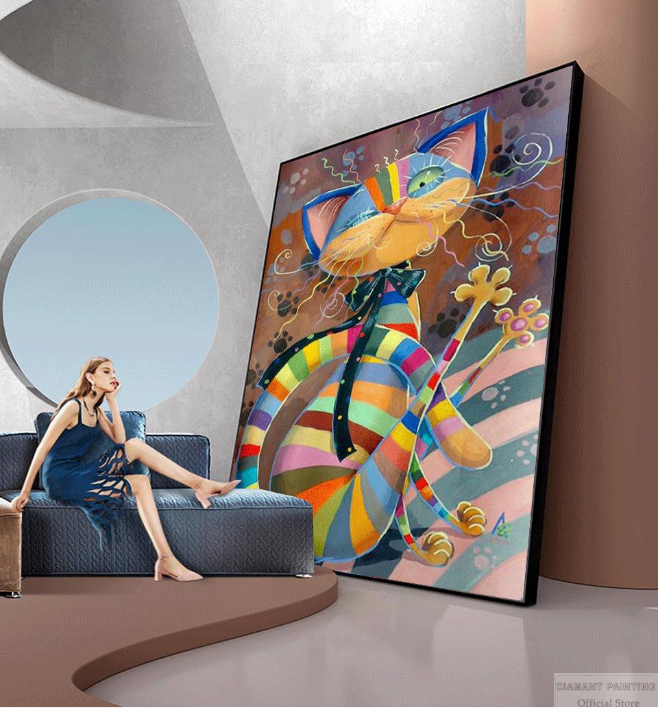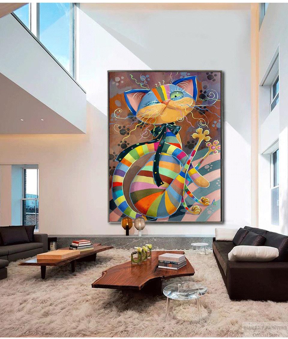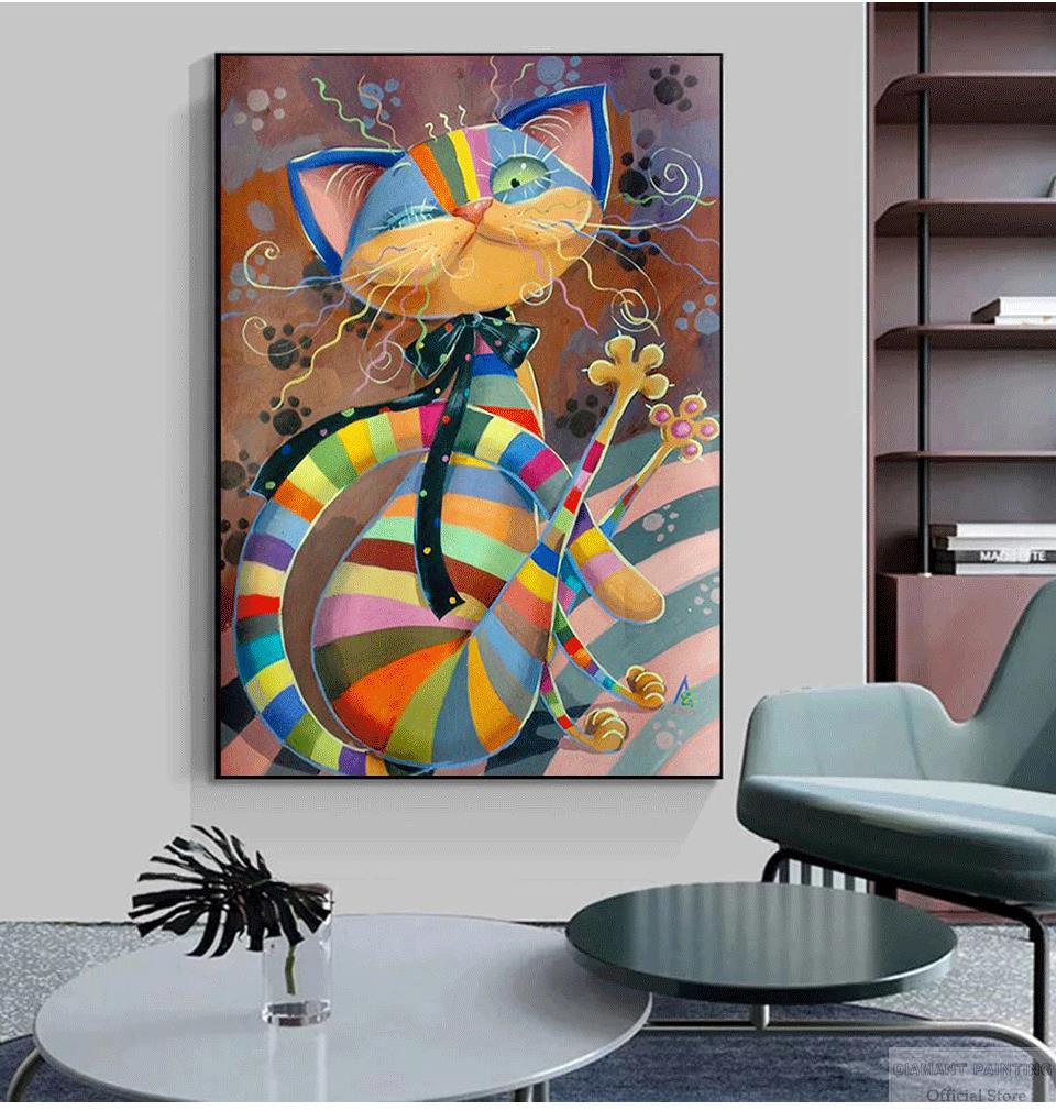 Алмазная живопись с кошкой, полноразмернаякруглая картина с мультяшными животными, вышивка крестиком, ручная работа, декор для детской комнаты, настенное искусство, подарок