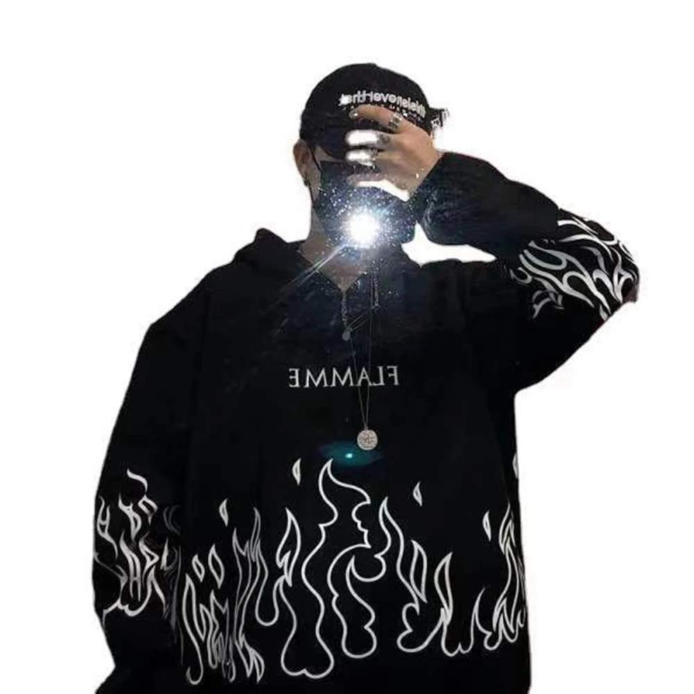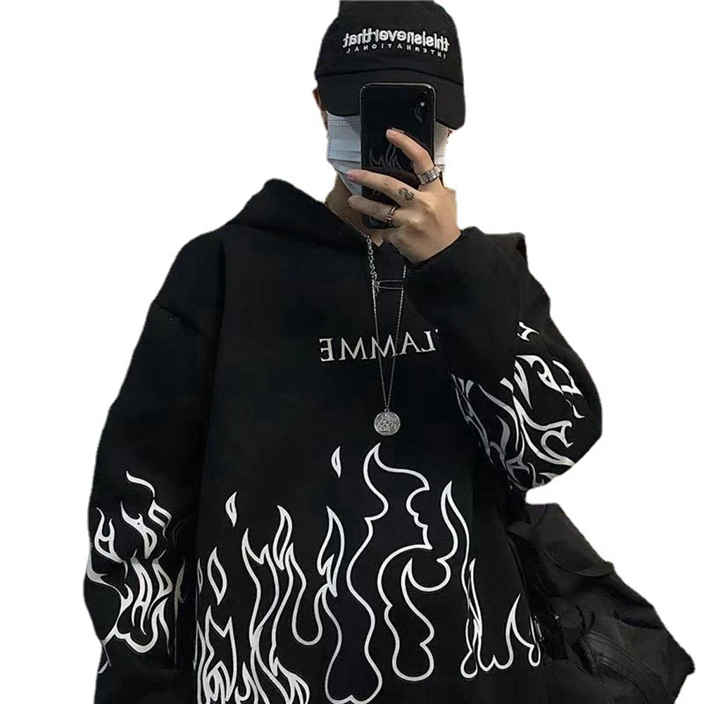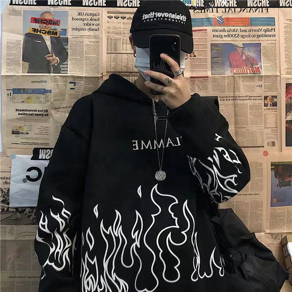 Толстовка мужская с принтом пламени, уличная одежда, пуловер в стил...