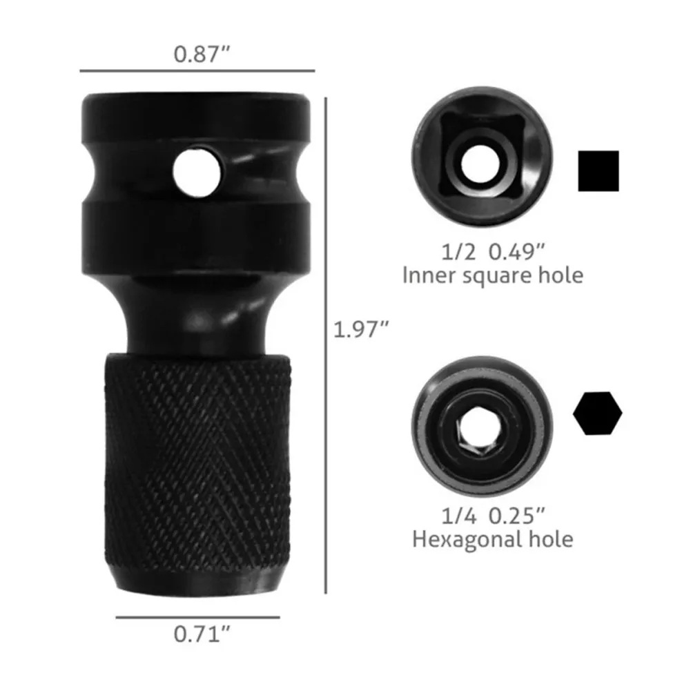 Тип: 1/2 дюйма квадратный гнездовой до 1/4 дюйма шестигранный гнездовой преобразовательМатериал: хромированная сталь* Количество: 2 шт.Посылка: