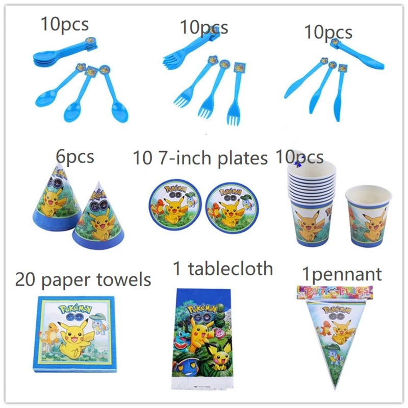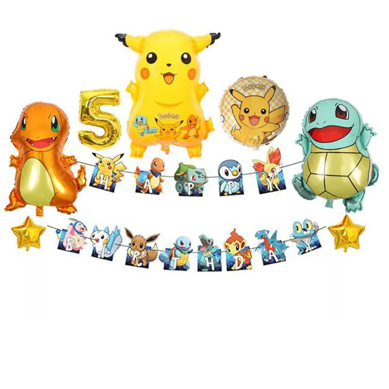 Вечерние комплекты с рисунками Пикачу на день рождения, Декорации для сцены и воздушных шаров серия Pokemon для мальчиков и девочек, детские игровые игрушки, подарки, аксессуары для детей