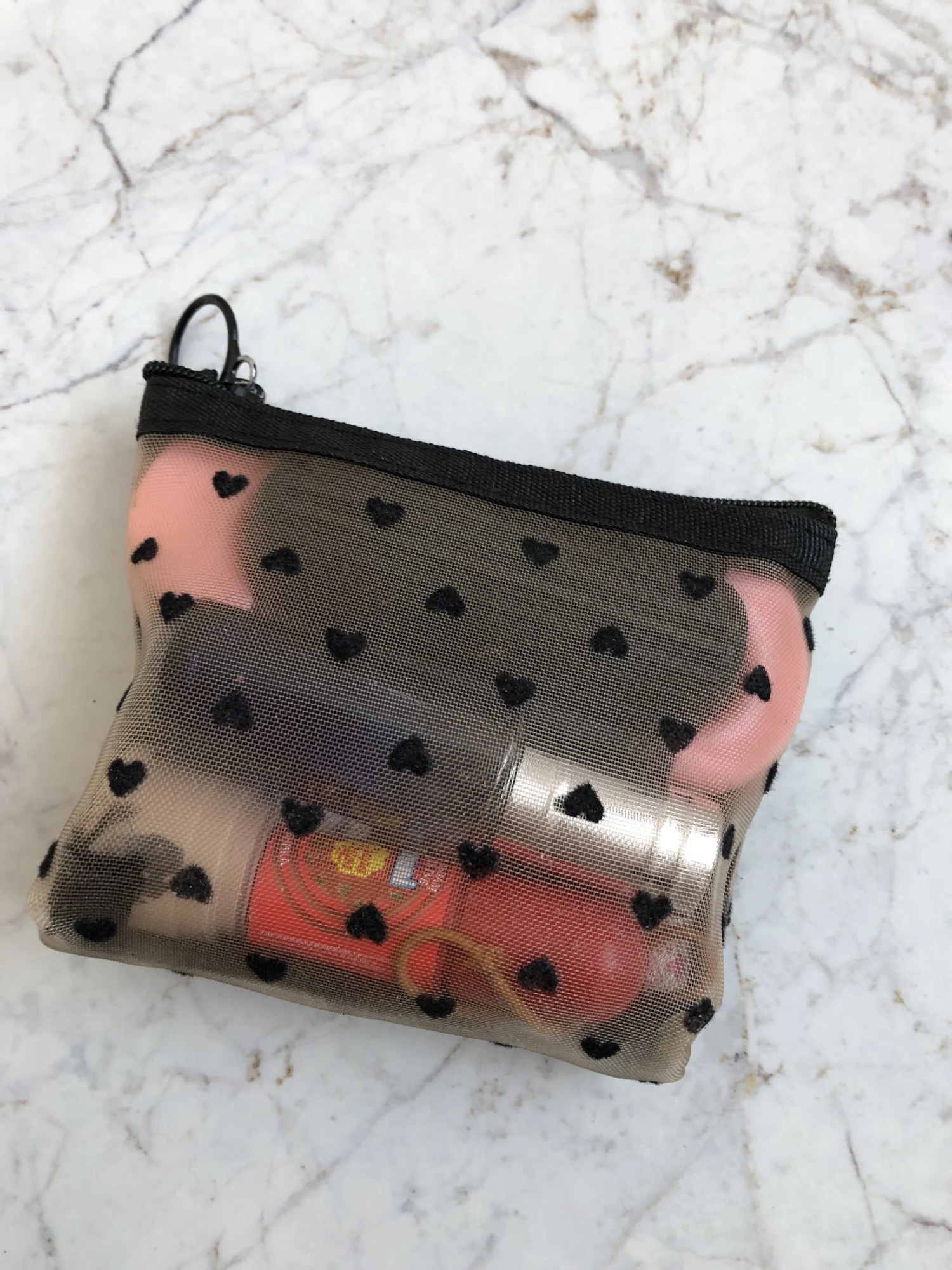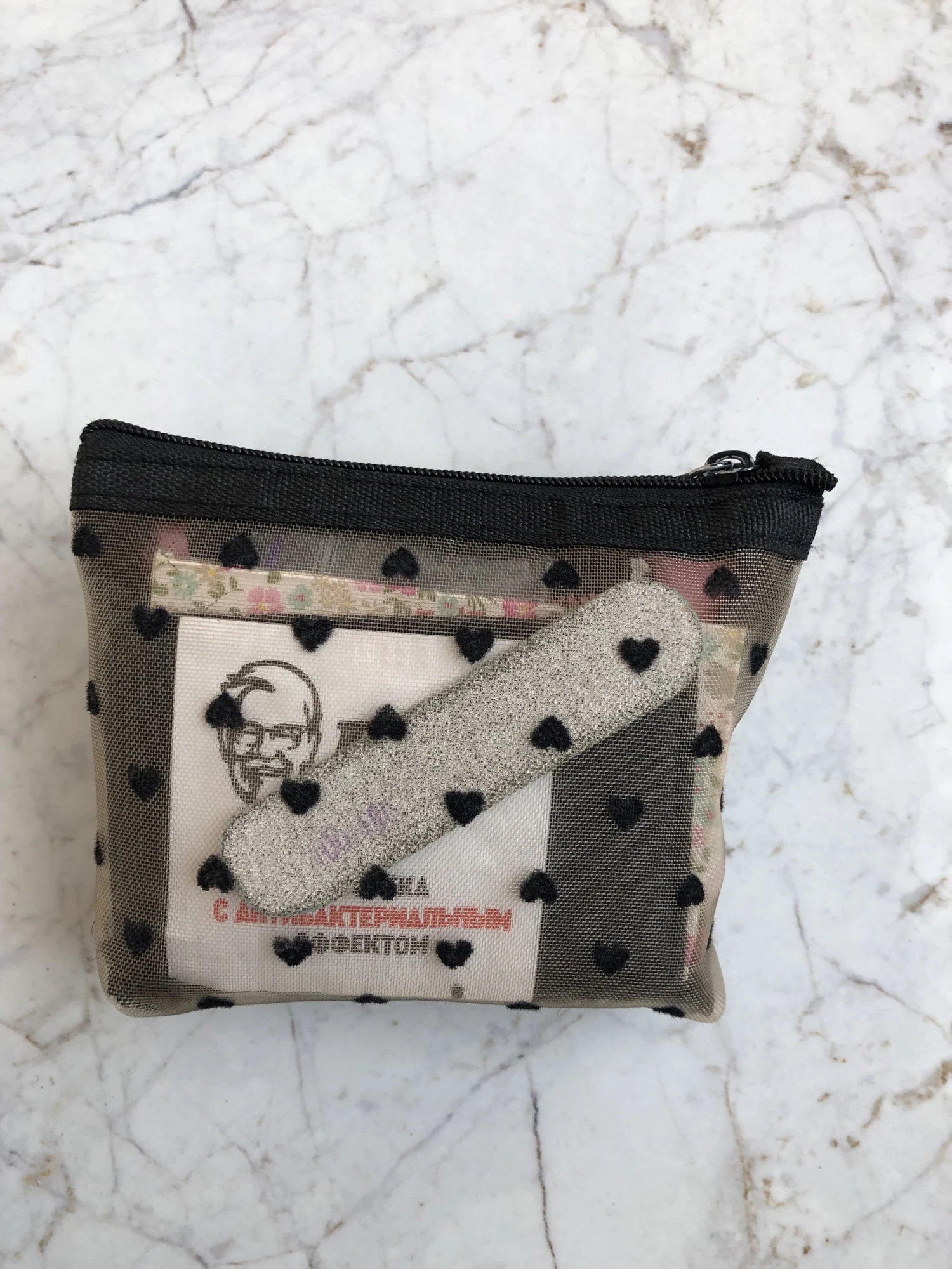Косметичка черная, сетчатая, в форме сердца, на молнии, для красоты...