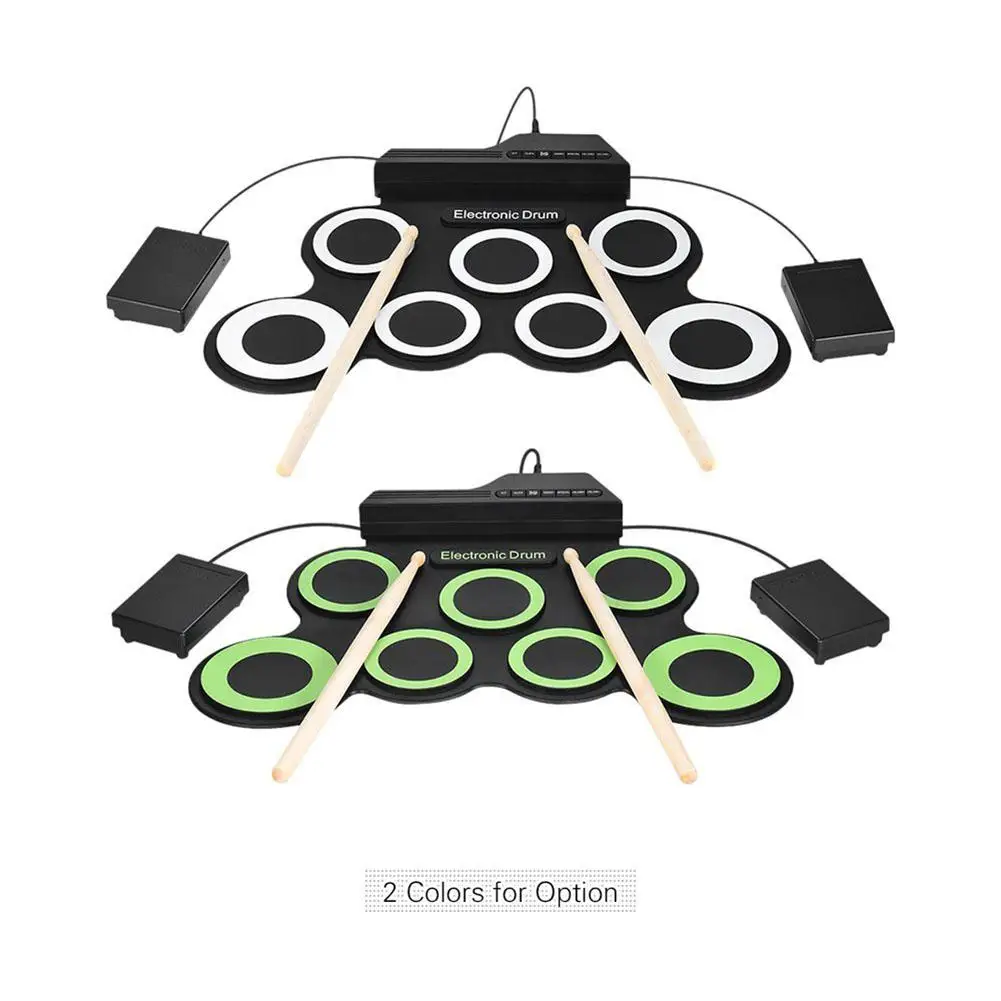 Профессиональная электронная барабанная подставка, цифровой USB 7 накладок, силиконовая резиновая электрическая барабанная подставка, с барабанными палочками, ножная педаль