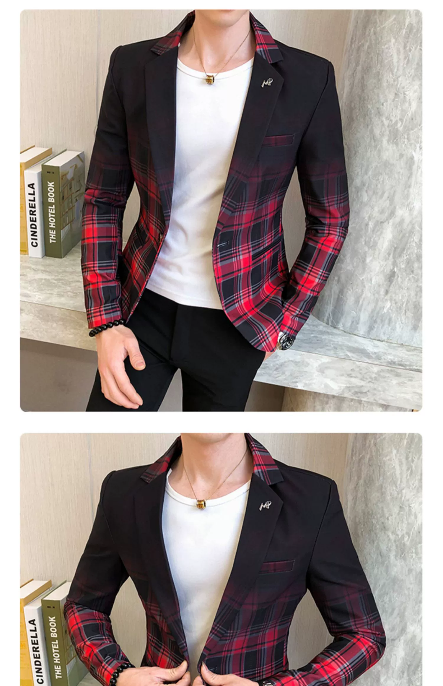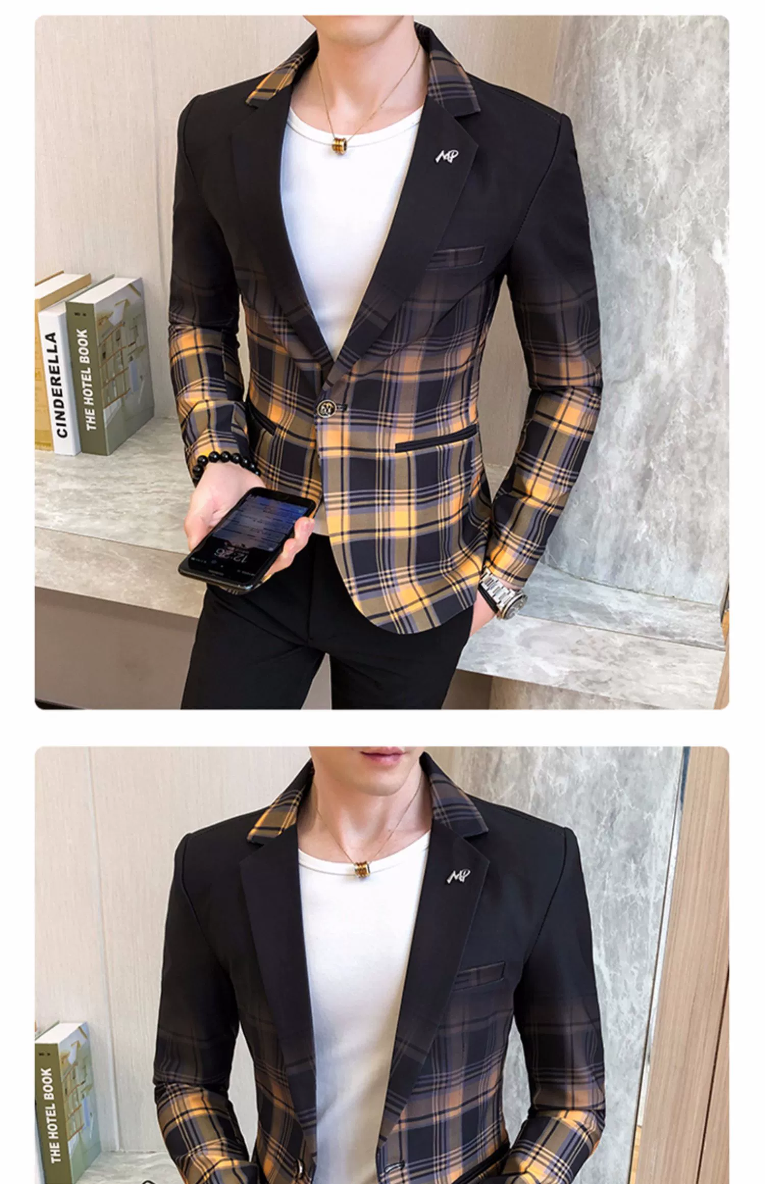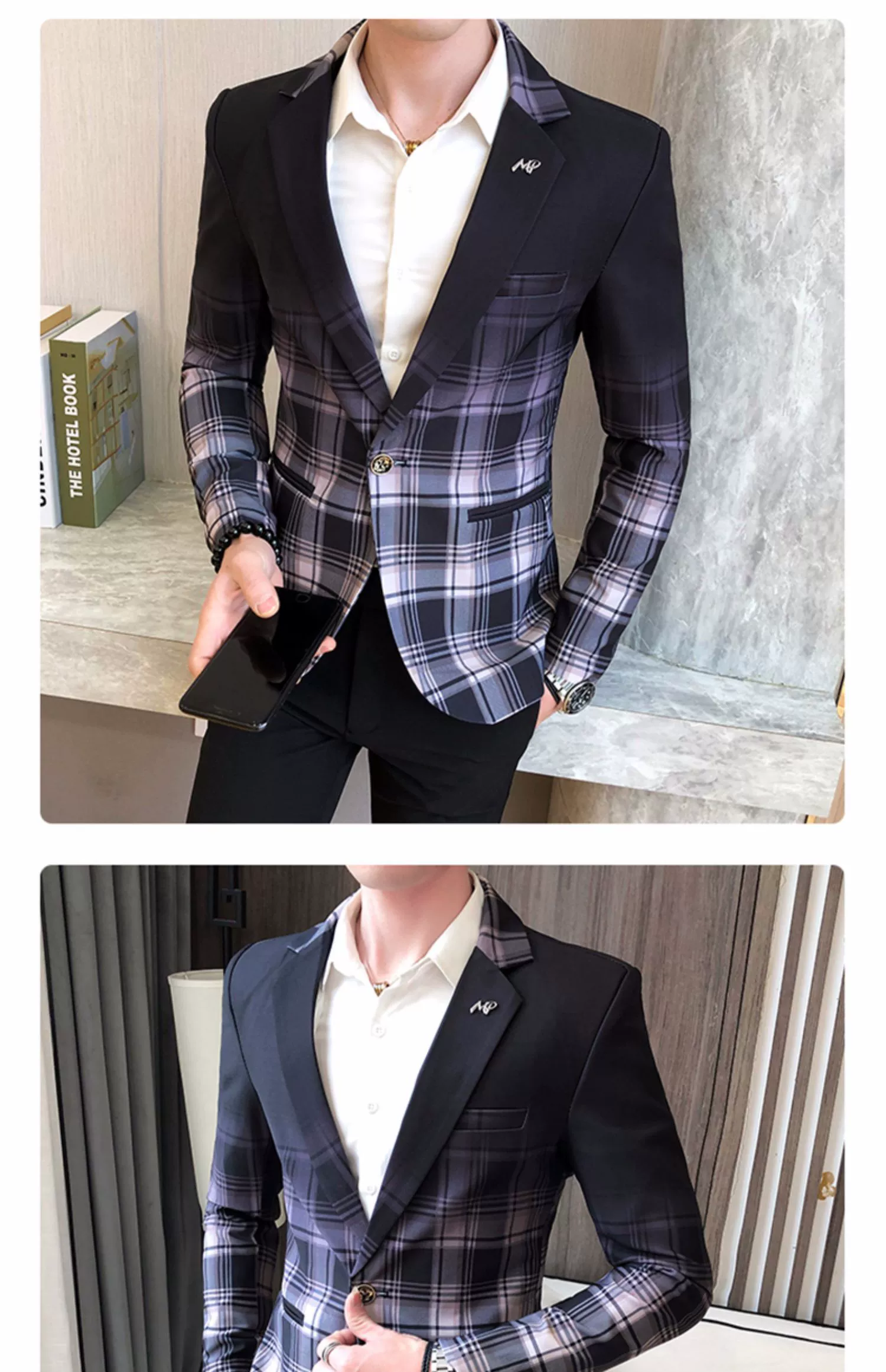 Мужской блейзер с воротником-стойкой, повседневный тонкий пиджак в Корейском стиле с принтом, туника в китайском стиле, размеры до 3XL