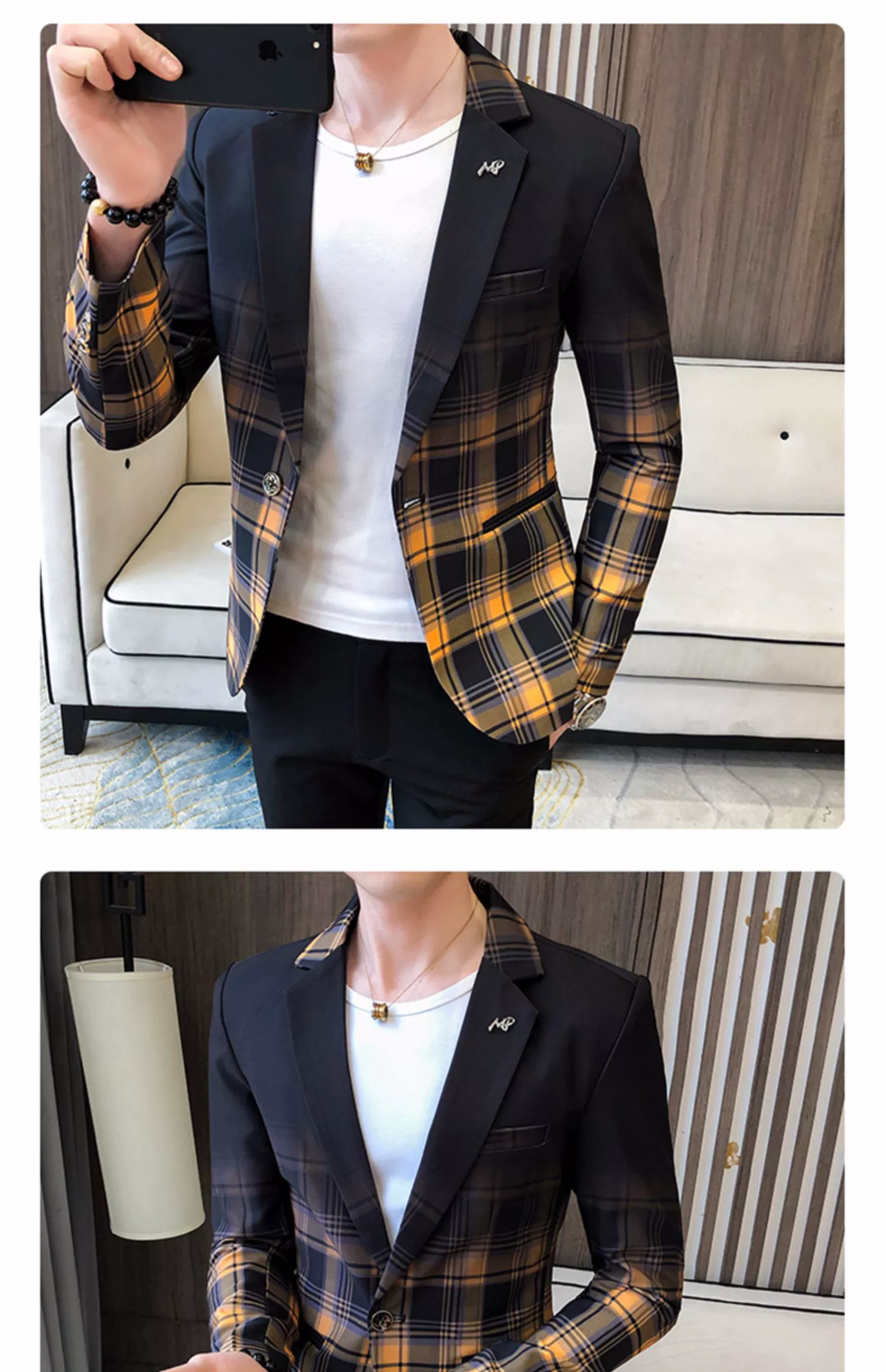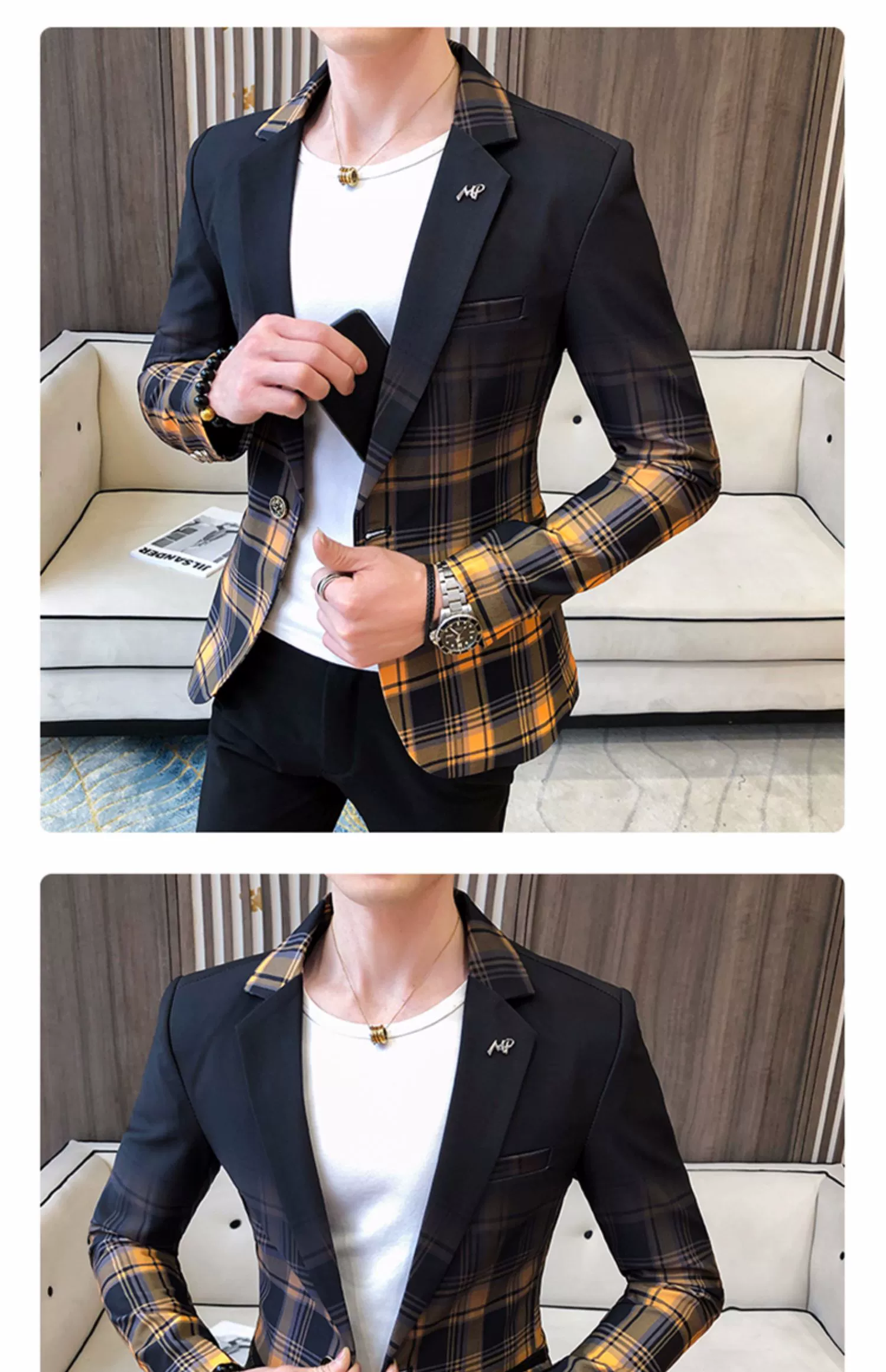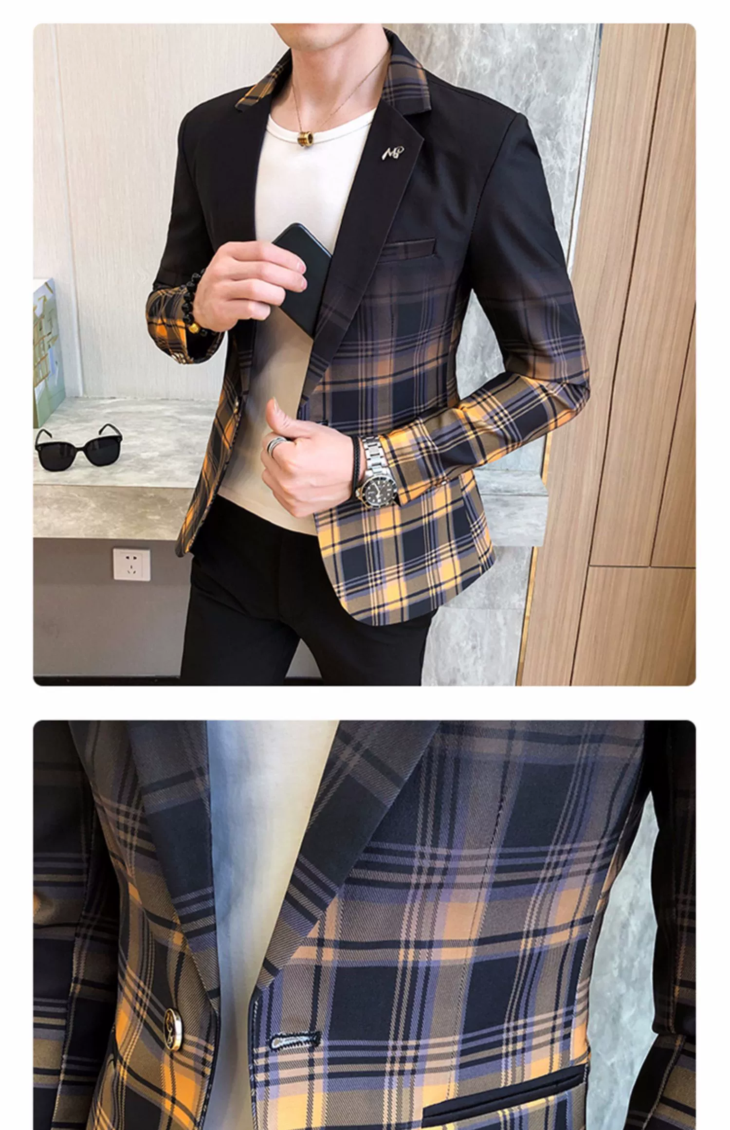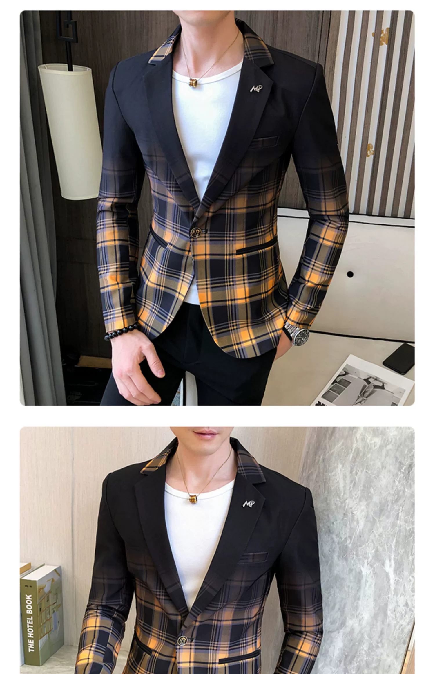 Мужской блейзер с воротником-стойкой, повседневный тонкий пиджак в Корейском стиле с принтом, туника в китайском стиле, размеры до 3XL