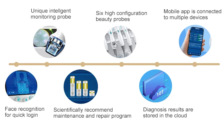 1. Водный очиститель для лица Аква пилинг: неинвазивное Отшелушивание для очистки, отшелушивания, извлечения и увлажнения кожи безопасно иБезболезненно.2. Ультразвук: через 1 миллион до 3 миллионов вибраций, эссенция проникает глубоко в кожу, мягко массирует клетки,Способствует метаболизму, повышает жизнестойкость клеток, улучшает кровообращение и лимфатическое кровообращение.3. Вибрационная Чистка скруббера кожи: отбеливание, омертвевшая кожа, удаление черных точек,4. Биполярная радиочастота: улучшает тонкие линии на глазах, повышает упругость и осветляет глаза, подтягивает лицо/кожуПодтяжка/разглаживание морщин/контур лица5. Холодный молоток: сужает поры, подтягивает кожу, удаляет морщины, способствует гиперплазии коллагена, устраняет покраснения и чувствительность,И исчезают темные круги и сумки под глазами.6. Кислородный Водород (H2-O2) распылитель: в сочетании с эссенцией прибор производит кислородный Водород, который может быть быстроПроникает в дерму через высокое давление