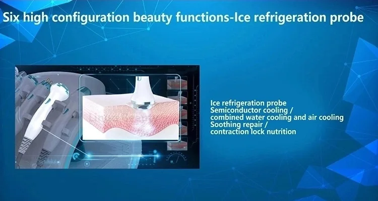 Замороженная холодная головка: с помощью полупроводникового охлаждения + воздушного охлаждения + технологии водяного охлаждения температура снижается до-5 градусов Цельсия, эффективно успокаивает и восстанавливает чувствительные мышцы, сужает поры, И блокировка влаги и питательных веществ.