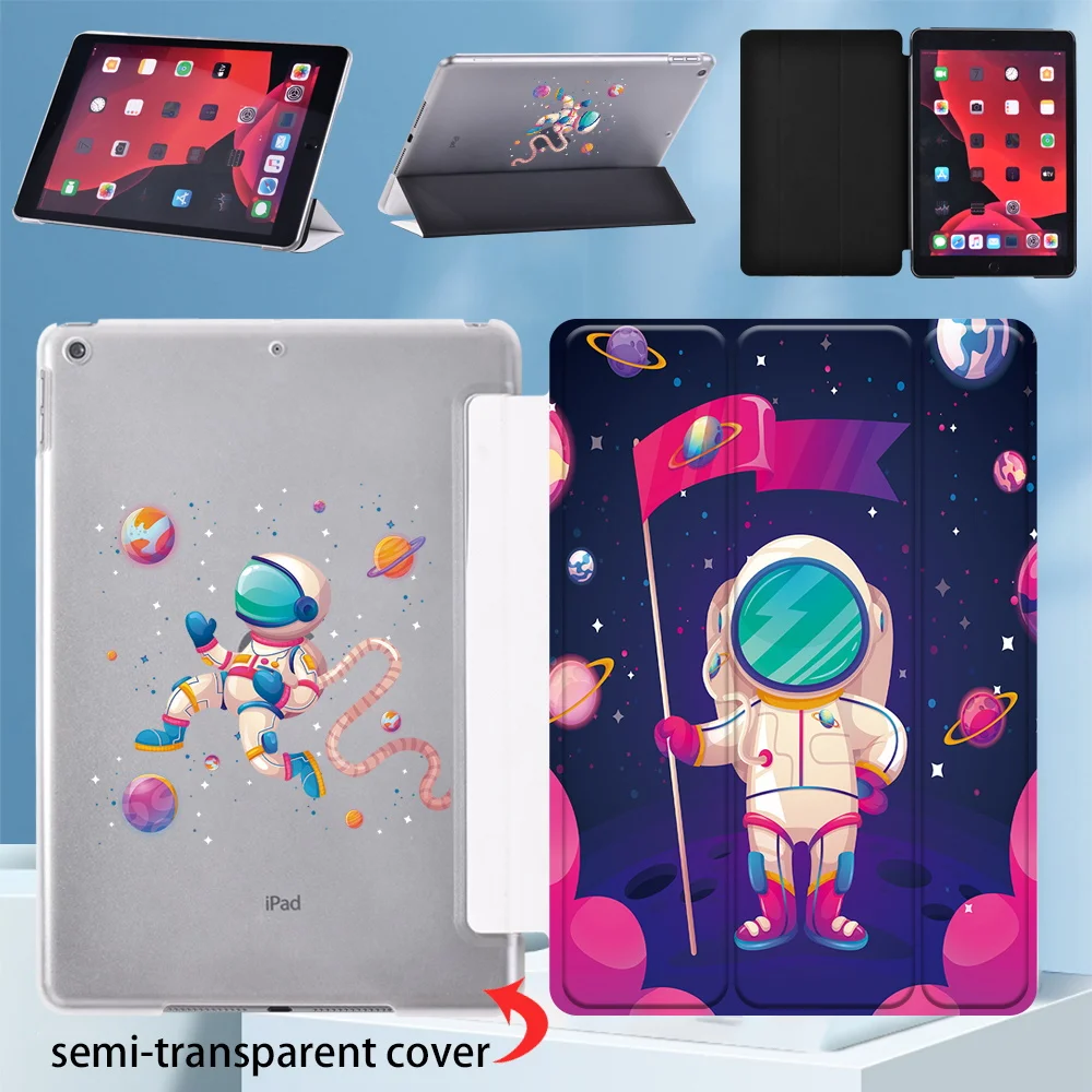 Умный чехол для планшета Apple iPad 10,2 дюйма 9 поколения 2021 мультяшный астронавт серия тройного сложения чехол-подставка + Бесплатный стилус