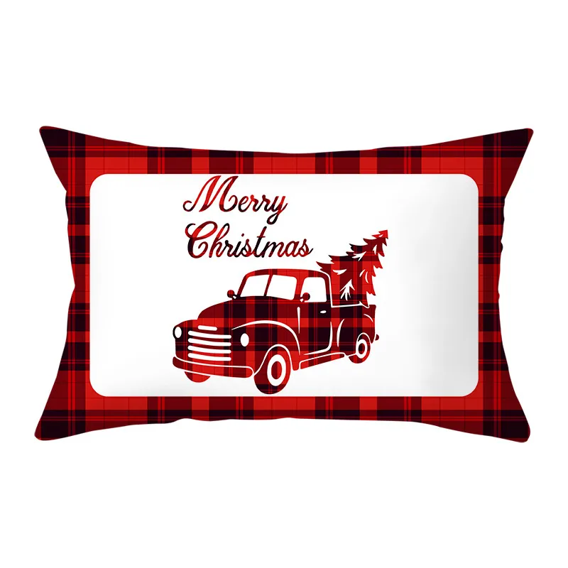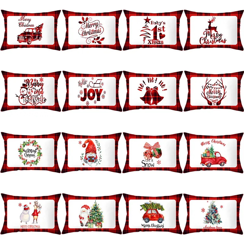 Рождественская красная клетчатая наволочка 30*50, наволочка с рисунком в виде Санта-Клауса, грузовика, дерева, декоративные подушки