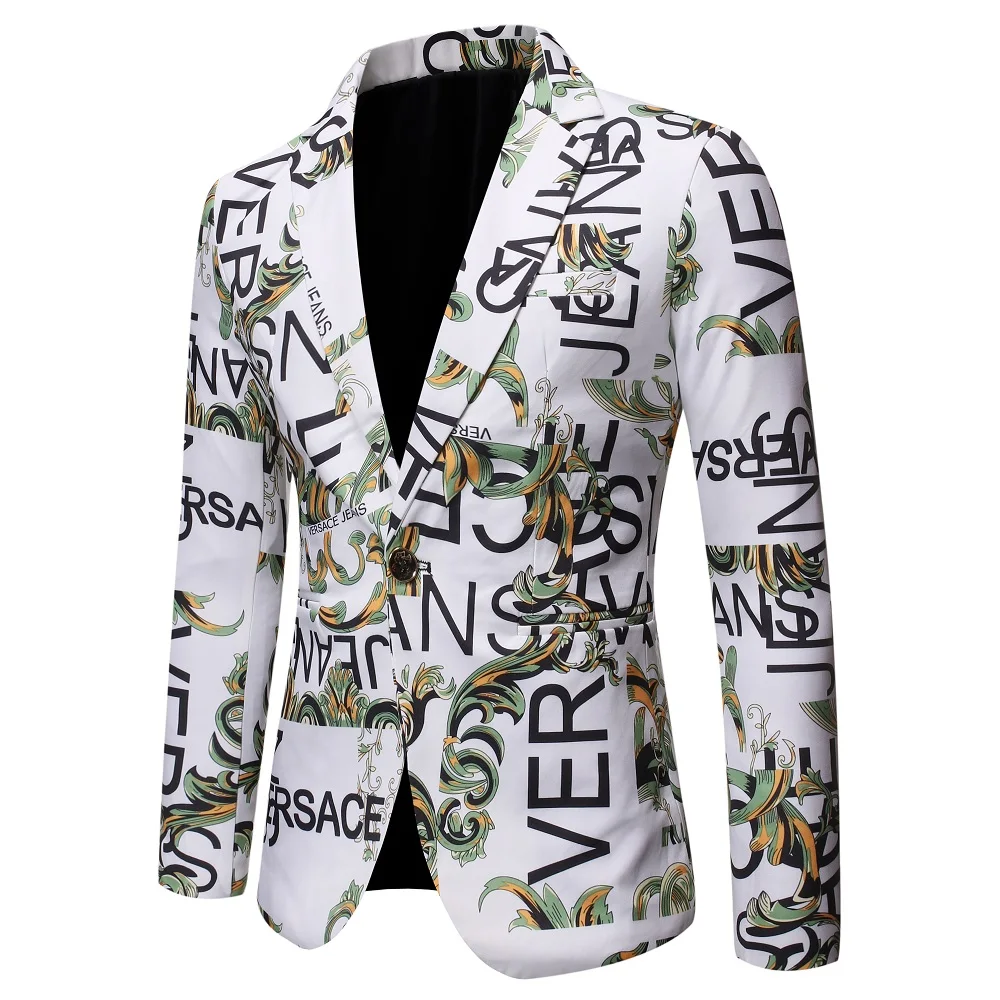 Новый осенний мужской повседневный костюм в европейском стиле с буквами, тонкие блейзеры с принтом, одиночный костюм, мужской костюм
