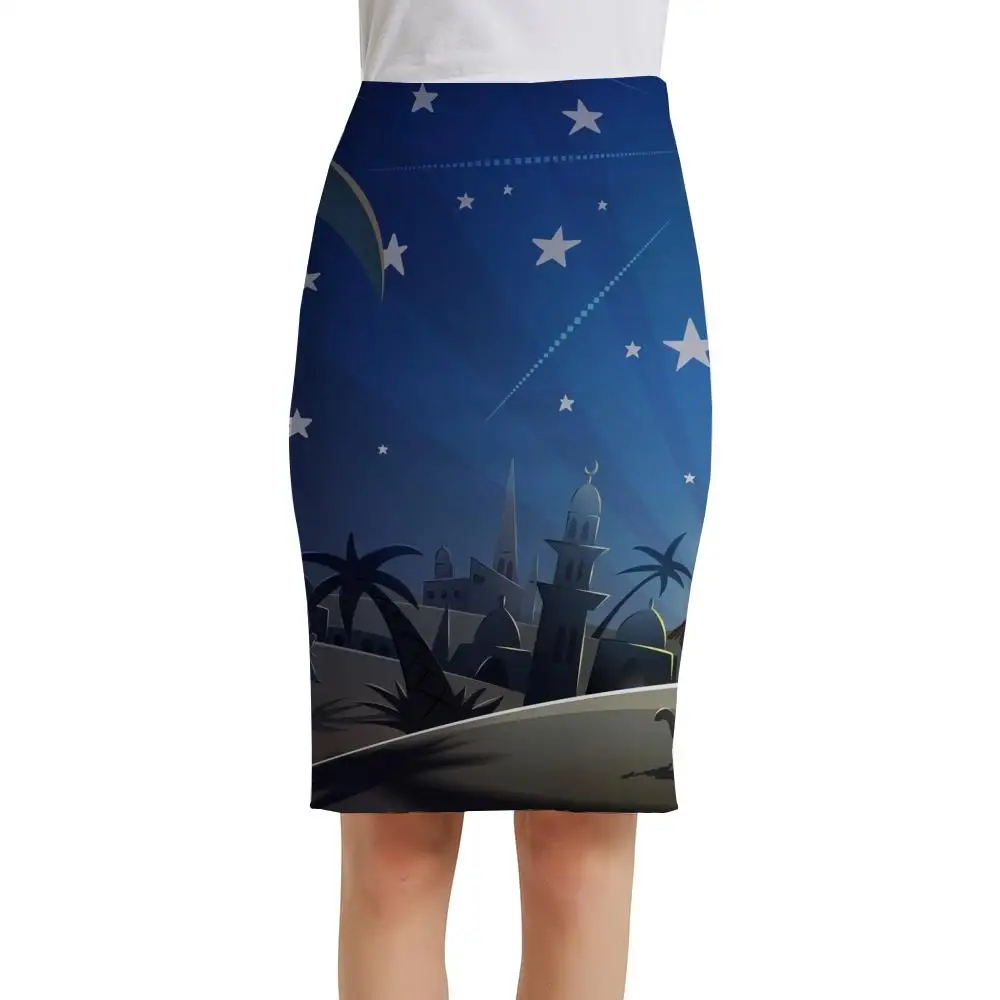 Женская юбка-карандаш KYKU, темно-синяя юбка с принтом туманности, ...