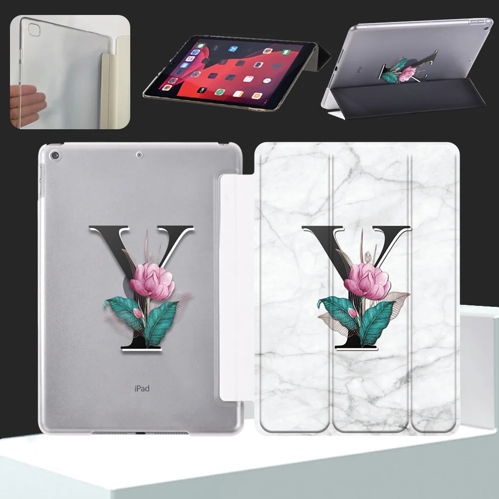 Умный чехол для планшета Apple iPad, 10,2 дюйма, 9 поколения, 2021, трехслойный, с инициалом имени и буквами, складной чехол + стилус