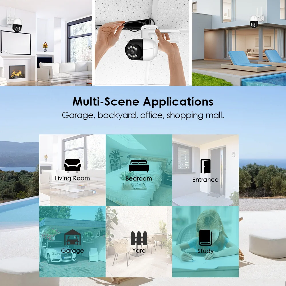После блокировки цели камера автоматически регулирует вращение панорамирования, отслеживая движущиеся объекты, автомобили, домашних животных, человека и уведомления push-оповещений на ваш смартфон.
