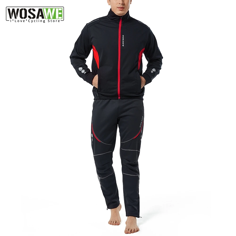 Мужской комплект велосипедной куртки WOSAWE, зимняя флисовая велосипедная кофта, ветрозащитные теплые спортивные брюки с флисовой подкладкой, одежда для горных велосипедов