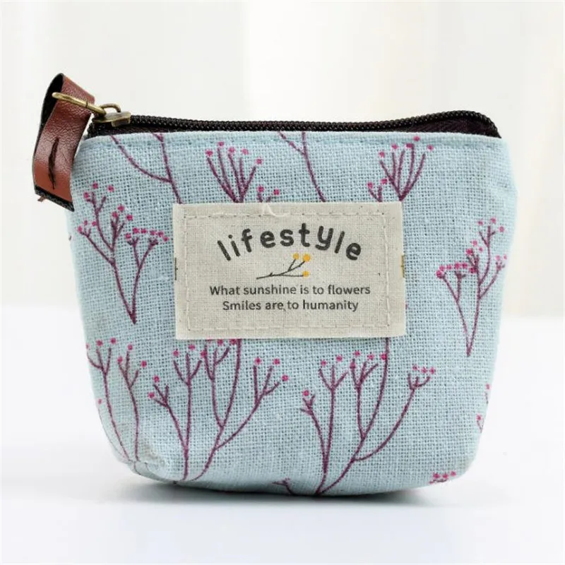 Холщовый женский кошелек в Корейском стиле, маленький бумажник на молнии с цветами, Хлопковый чехол для денег, ключей, чехол для детей и девочек