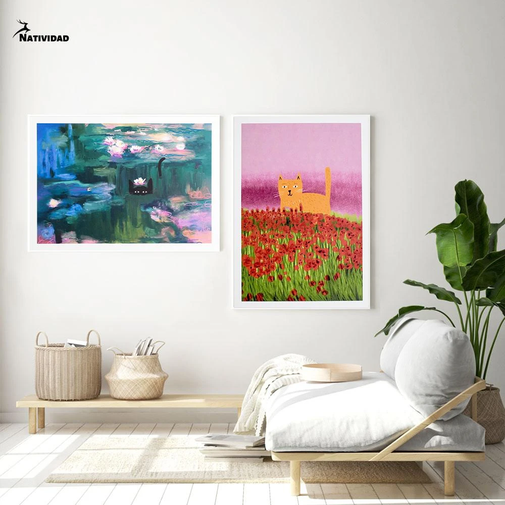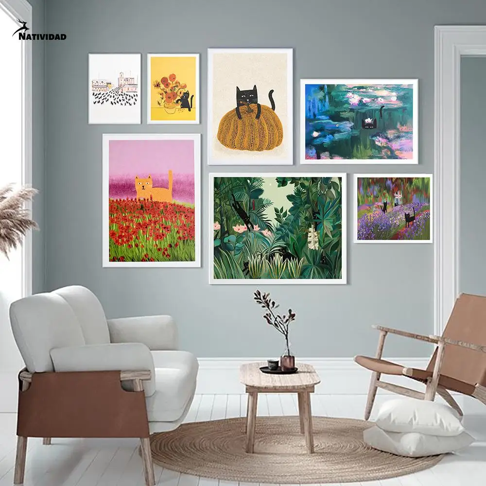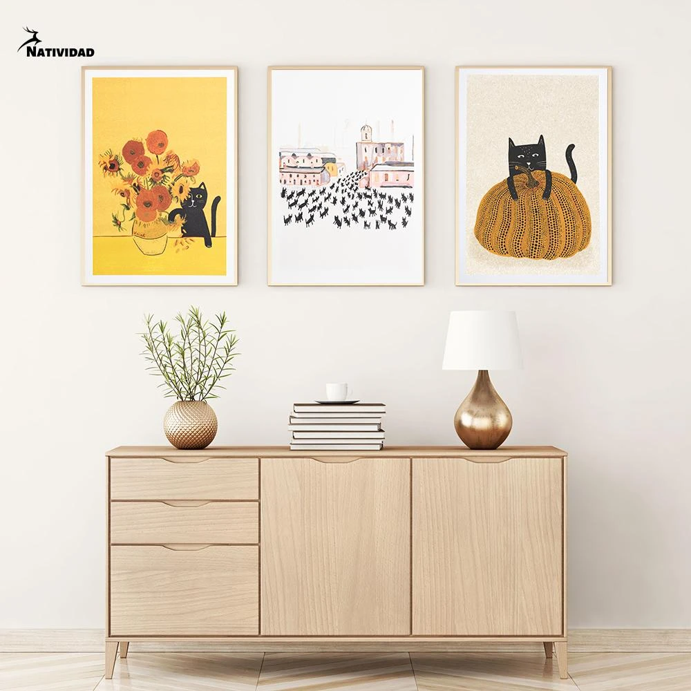 Настенная картина с изображением подсолнуха лотоса с кошками, тыквы